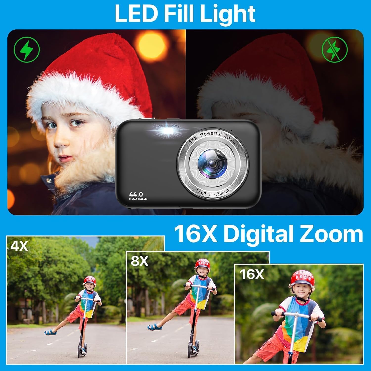2024 Kids Digital Camera 1080P Camera with 16X Zoom – 44MP Anti Shake Point and Shoot Digital Cameras for Photography | Compact Small Camera for Kids Girls Boys Teens Beginners