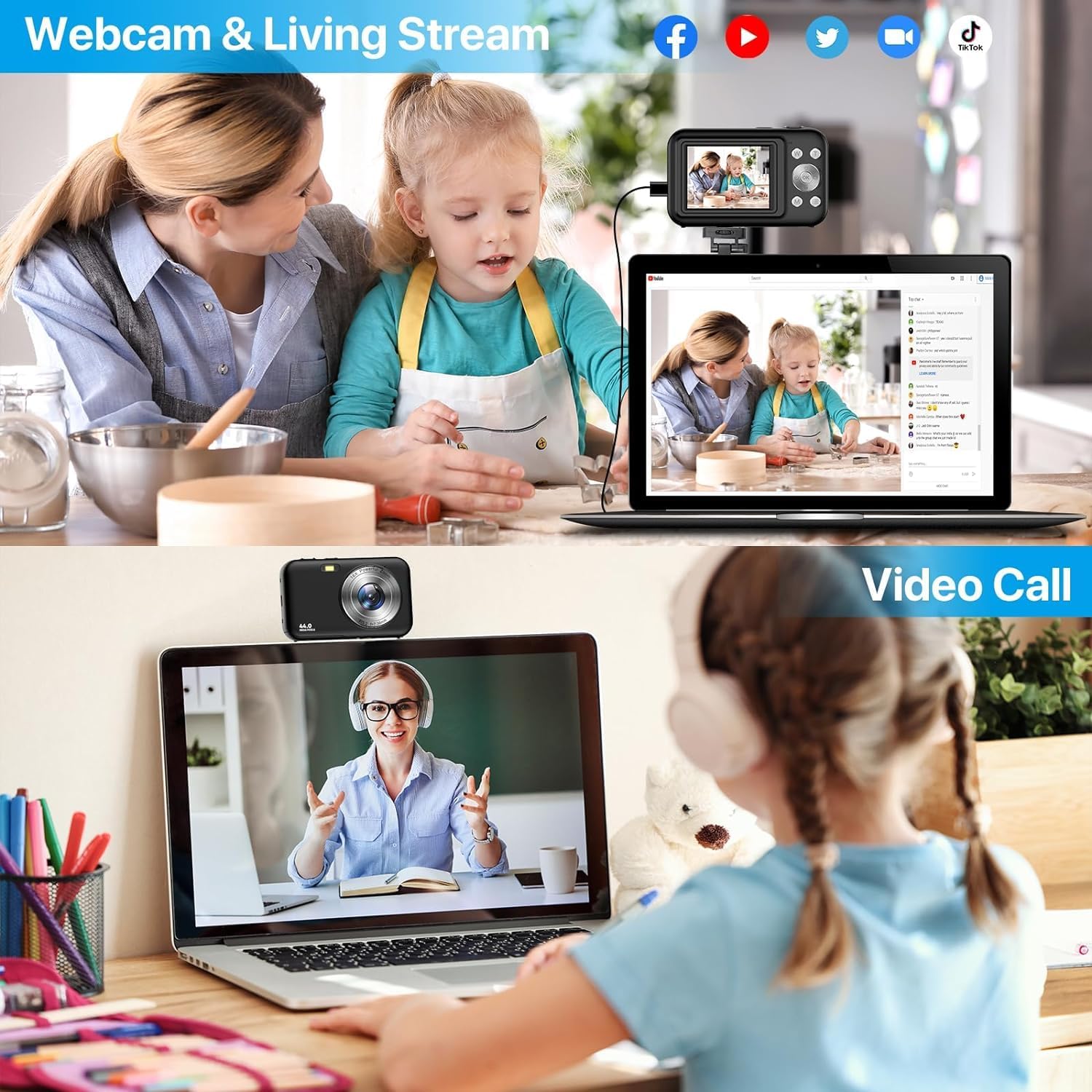 【Vlogging Recording & Webcam】 Our digital camera equipped with video mode, high-bit-rate of 30 fps allow you could record stable and HD videos. The Pause feature allows you to pause while recording or playing a vlog, saving you time editing your video. In addition, this digital vlogging camera also can be used as a webcam, built in microphone so you can make video calls or live stream easily on all social media.