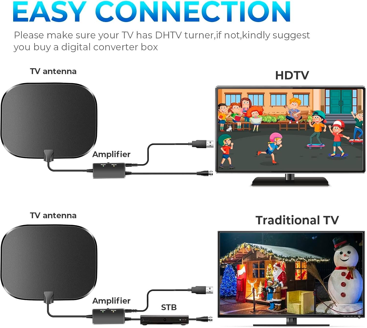📡【Stylish Thin Design】 Unique black classic and trendy fashionable tones can be well matched with your decor and surroundings. Soft ultra thing design is more delicate and lightweight, which is allow you hide it at your desired position. Antennas is easy to install. Just connect to AN/IN ports of HDTV or set top box, power the antennae by plugging the USB connector into a charging port on the HDTV or into outlet with power adapter.