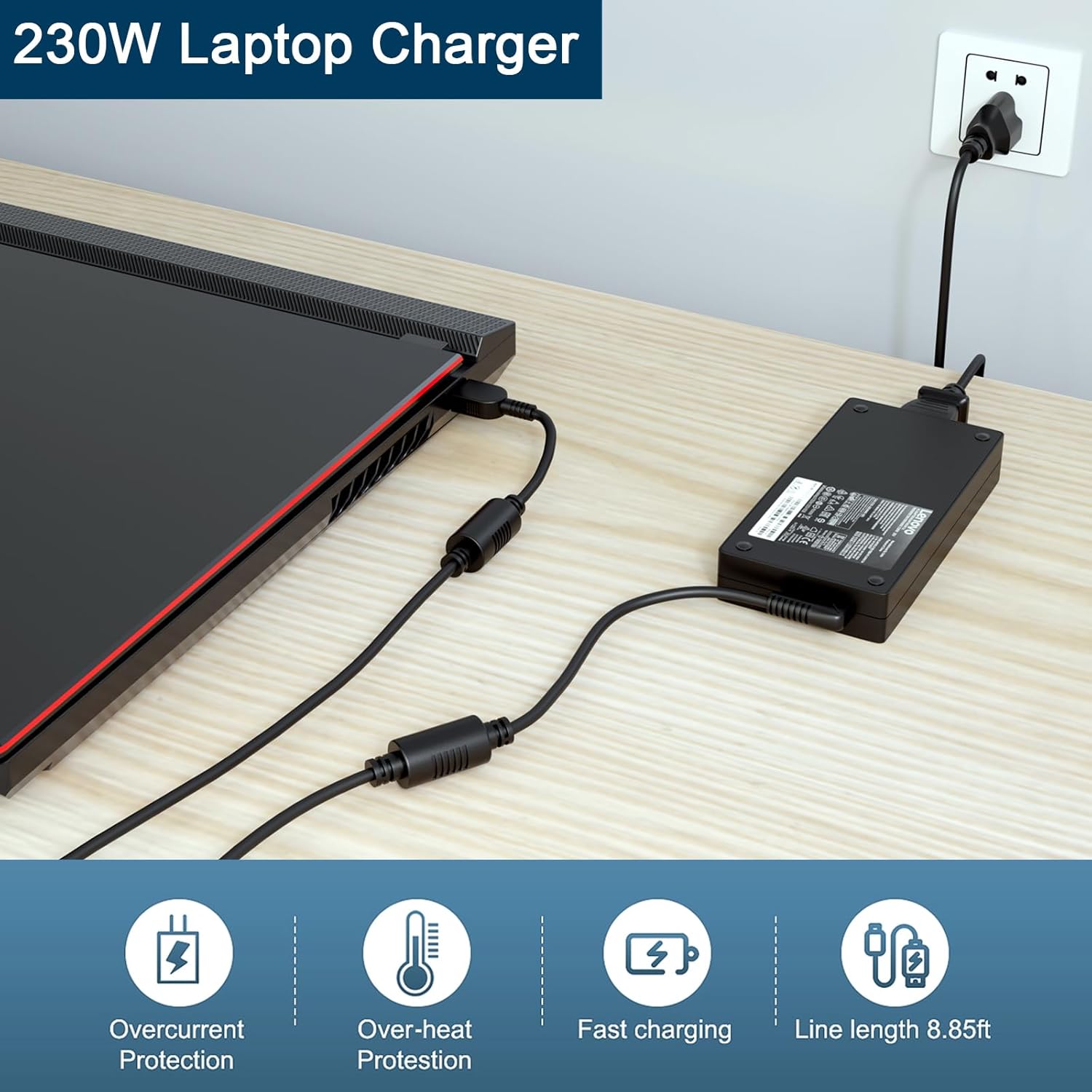 The maximum power of this charger is 230W, and the interface is Square Yellow Slender Tip. This product has passed rigorous tests for its premium quality and safety system.Before purchasing, please check if it matches your original charger.