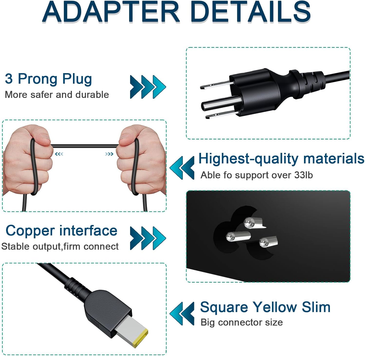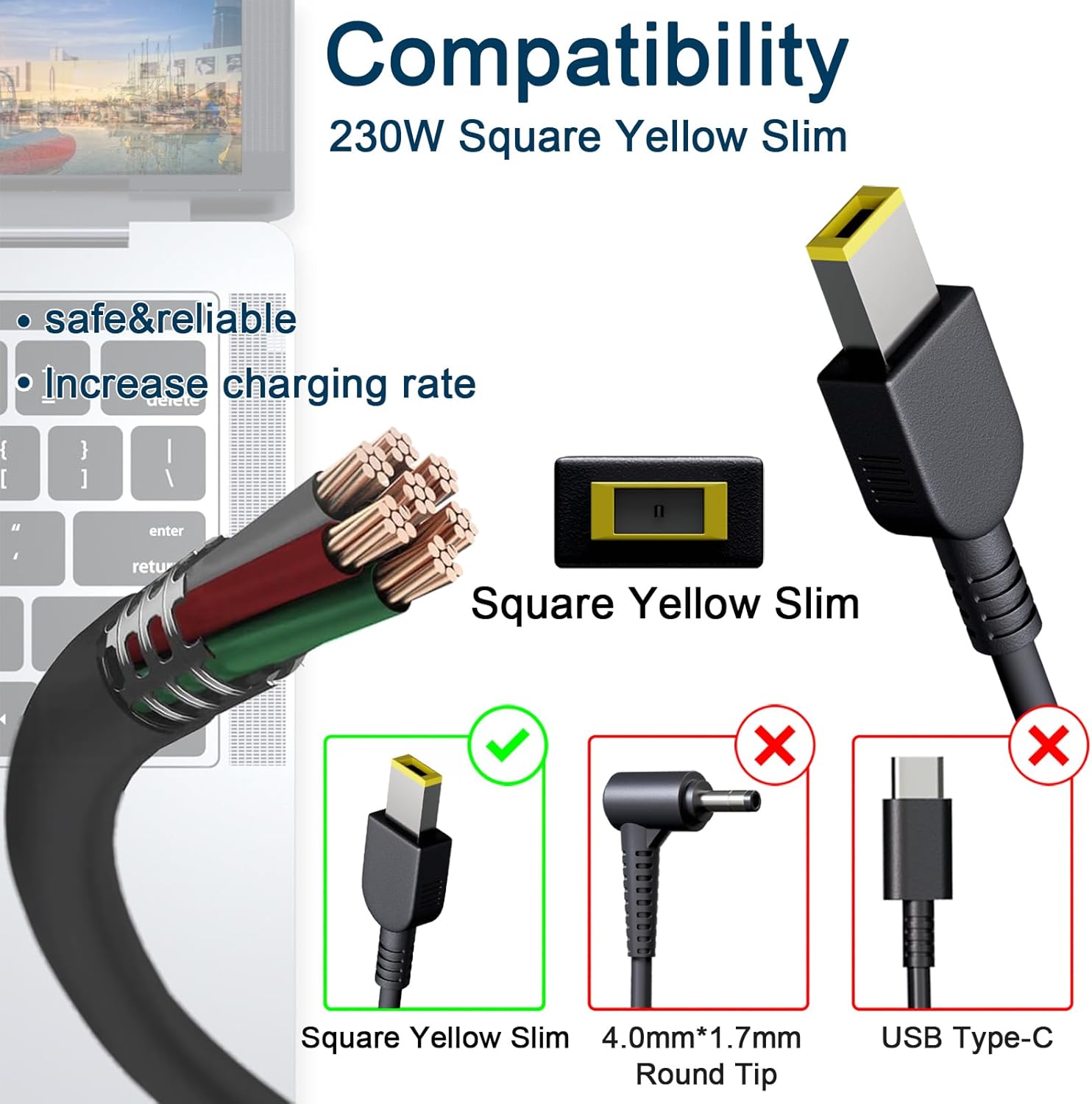 【POWER SPECS】Output & Wattage: 20V-11.5A 230W (Works with 20V-8.5A 170W laptop) Input voltage: 110-240V 50-60Hz Plug Size: Square Yellow Slender Tip [If your laptop’s power exceeds 230W, please do not purchase it. ]