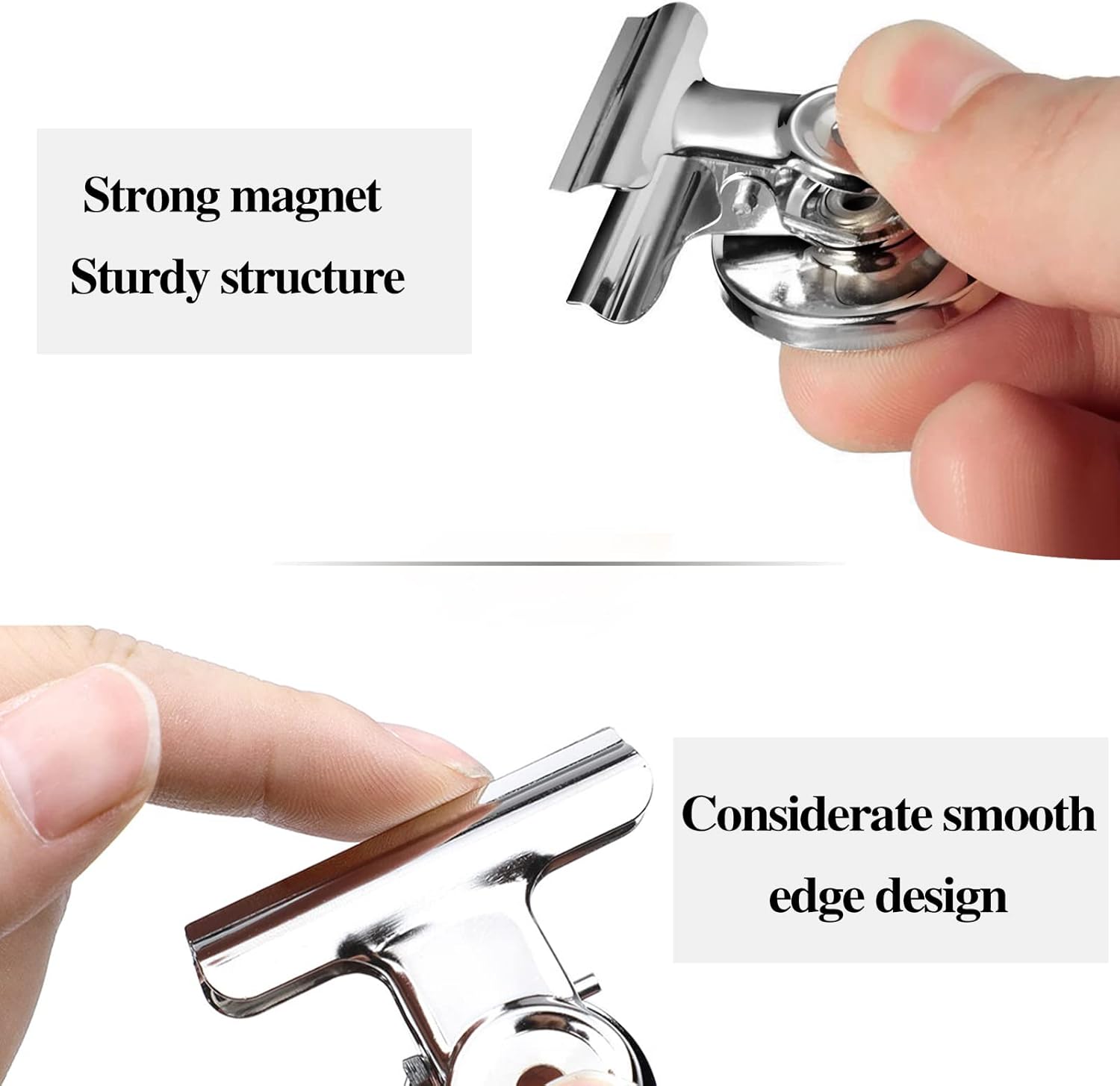 【Sturdy Structure】- These magnetic clips are made of stainless steel, which is resistant to corrosion and oxidation, so they are reliable and reusable. And proper spring mechanism makes it to open easily and bite tightly.