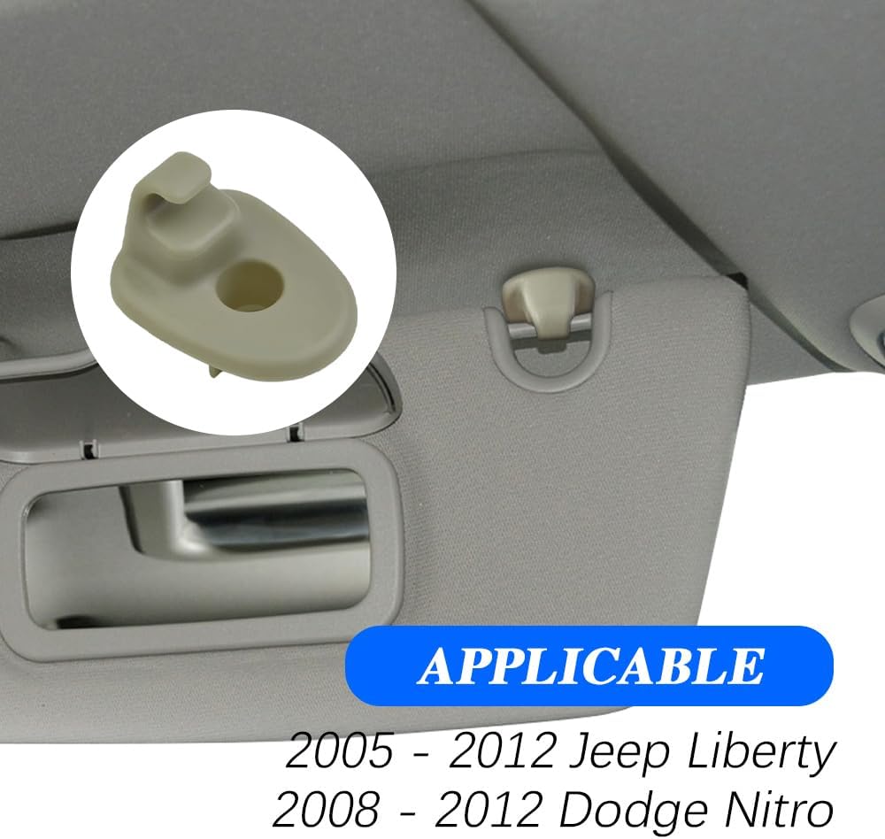 [Compatible Model]: This sun visor hook clip is suitable for most Jeep and Dodge models on the market is compatible with JEEP LIBERTY KK KJ (2005-2012), for JEEP CHEROKEE KK KJ (2005-2012), for D-ODGE NITRO KA (2007-2012).
