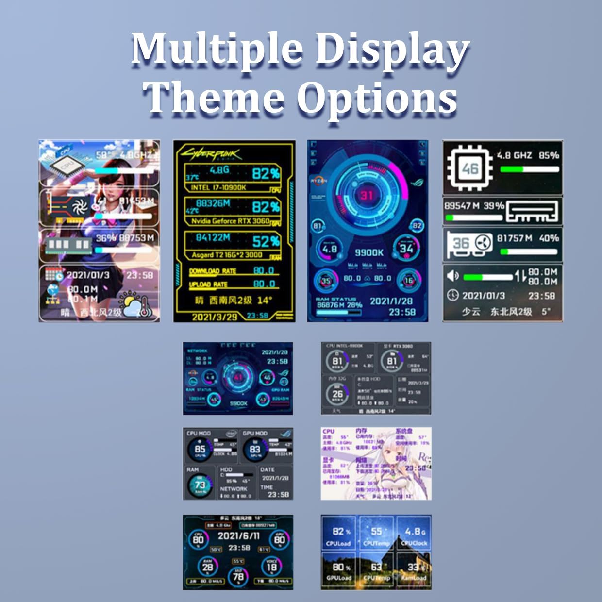 【EASY TO USE】: This computer temperature monitor is mainly used for host temperature monitoring, just connect the mini secondary screen to your computer with a USB cable our customized software to use it, and the mini screen has a variety of built-in themes to choose from, the USB interface connects directly to comprehensively monitor the health of your computer, and the shutdown automatically rests the screen.