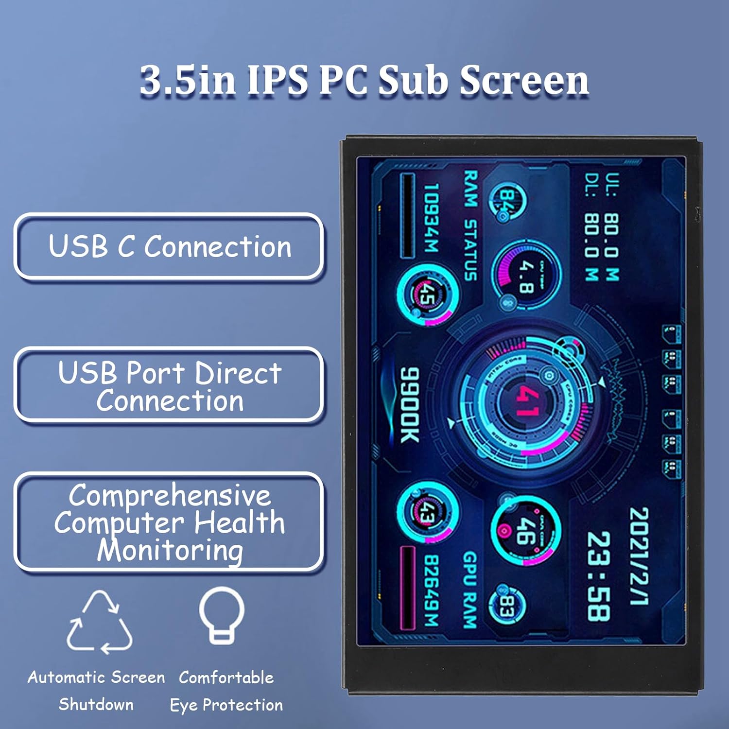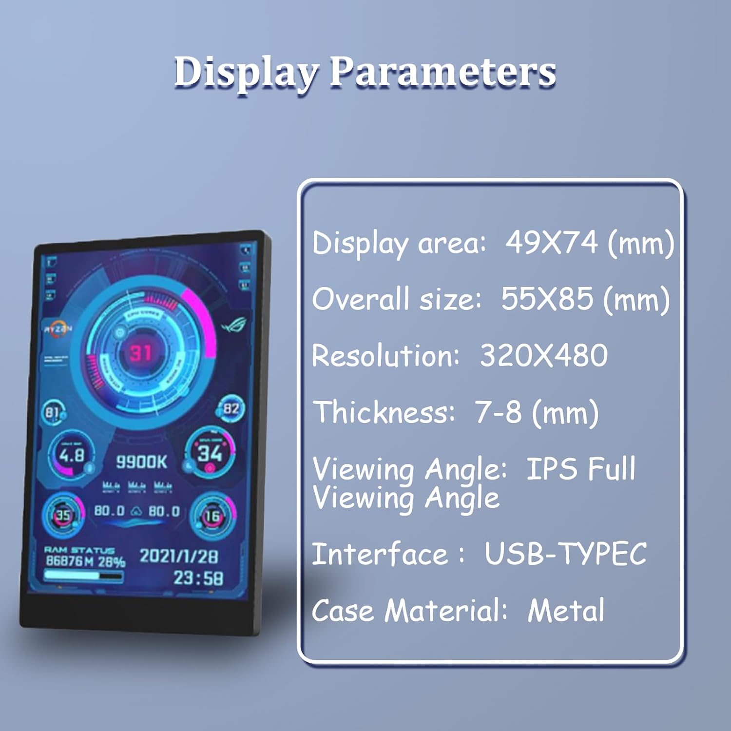 【3.5-INCH SCREEN】: This PC temporary monitor features a 3.5-inch IPS screen with a screen resolution of 320 x 480 and interface: USB TYPEC to ensure a clear image and can be placed inside or outside the case.
