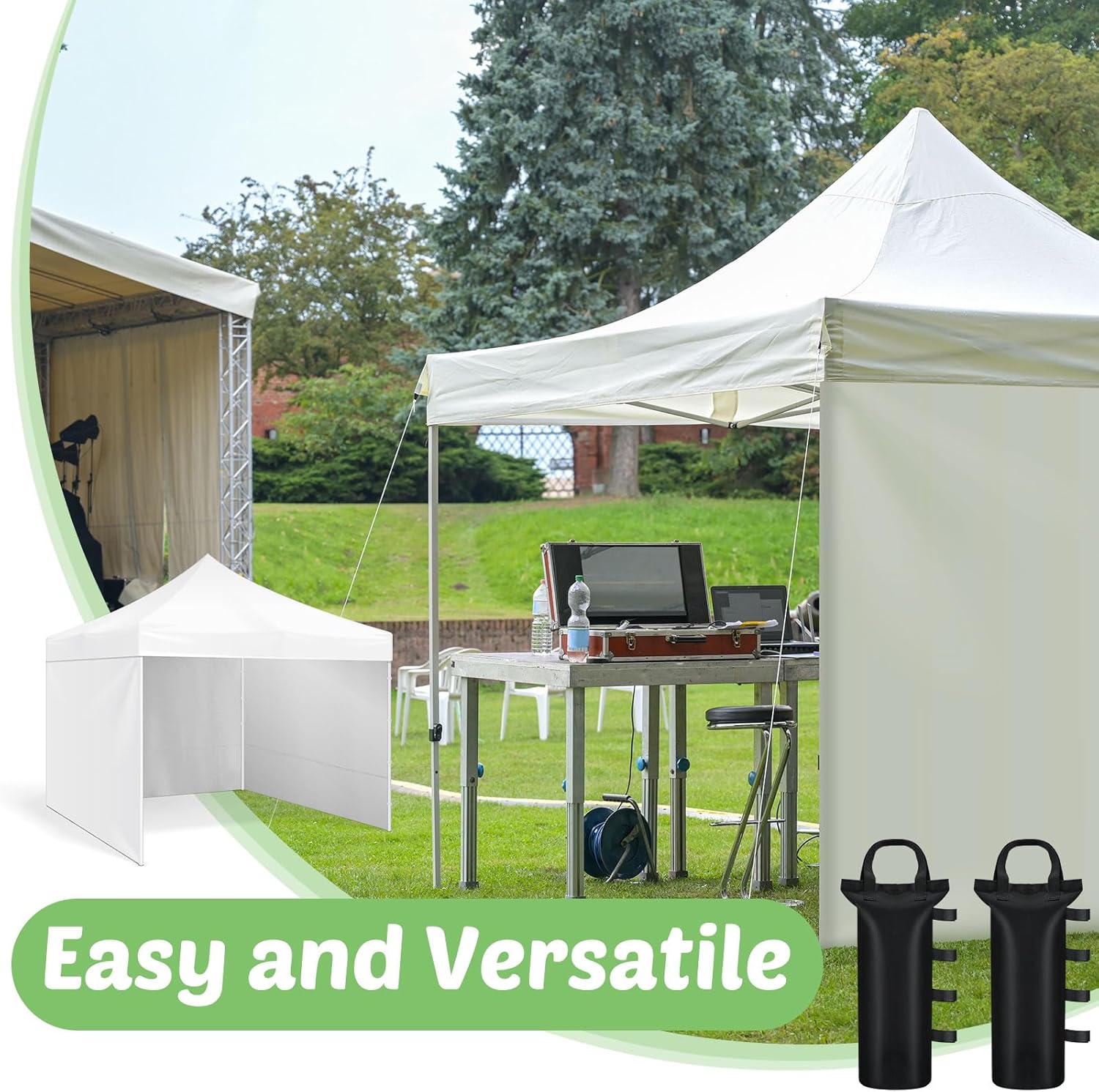 3 Pcs Instant Canopy Tent Sidewalls for 10×10 Pop up Canopy with 4 Canopy Weights Sand Bags 210D Waterproof Windproof Canopy Outdoor Canopy Sidewalls, Canopy Tent Not Included (White)