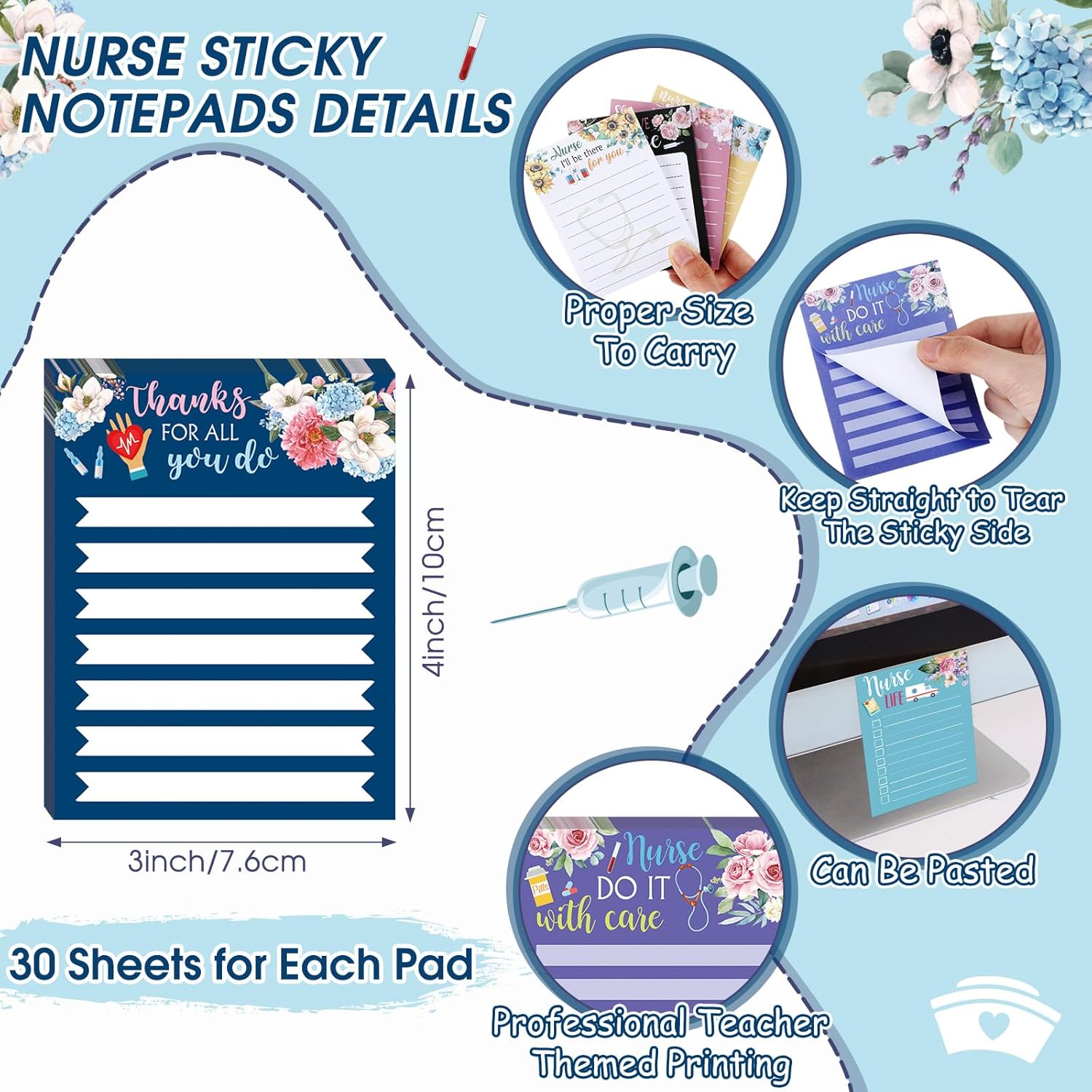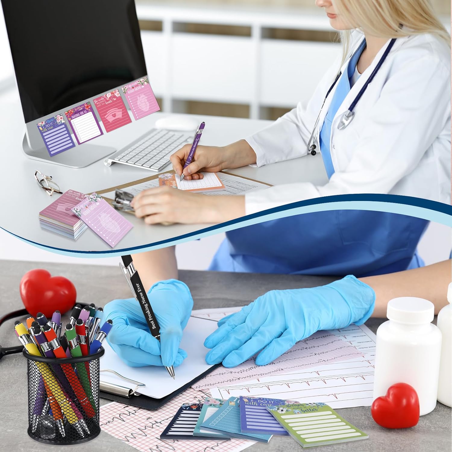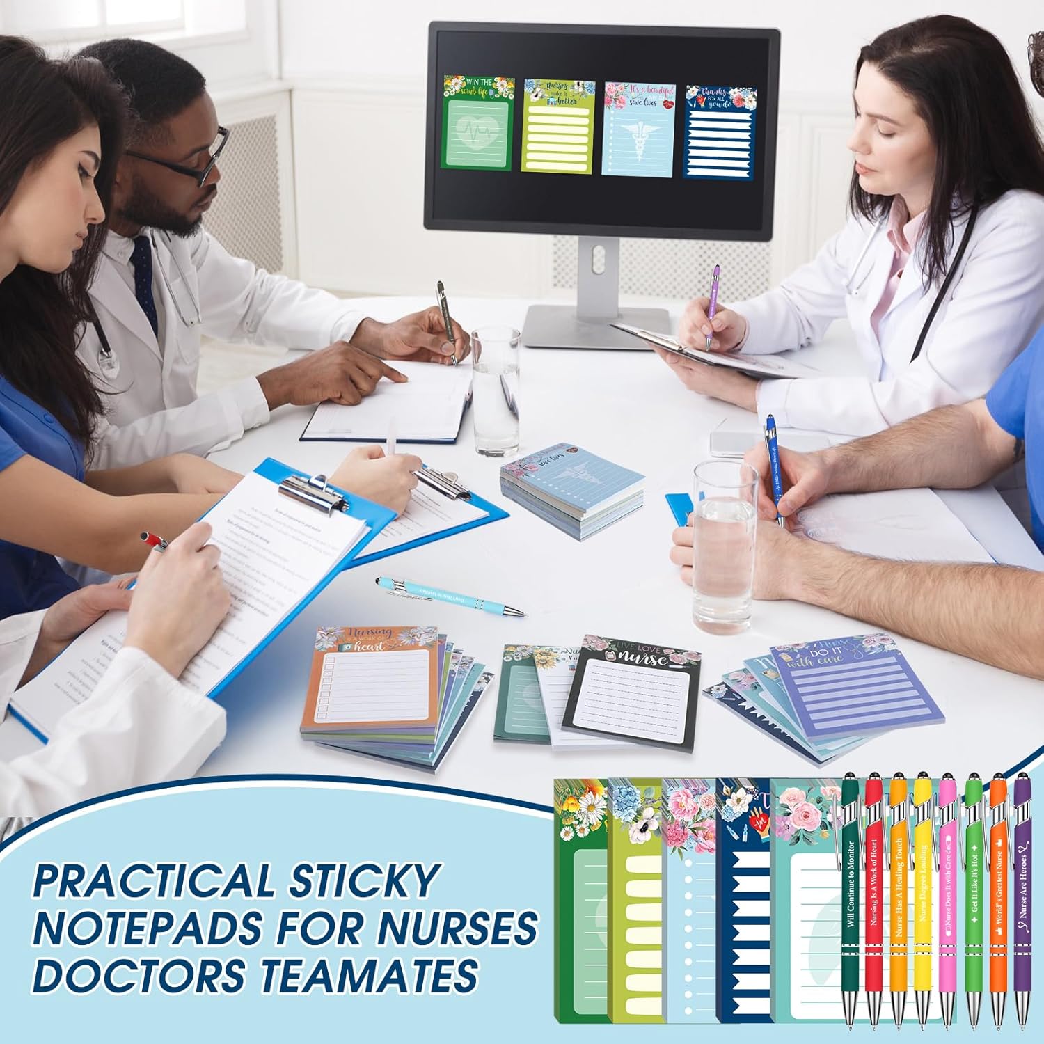 32 Pcs Nurse Sticky Notepads with Pens Bulk Teacher Appreciation Gifts Set Graduation Gifts for Teacher Cute Sticky Notepads Ballpoint Pens Teacher to Do List Memo Pads for Teacher
