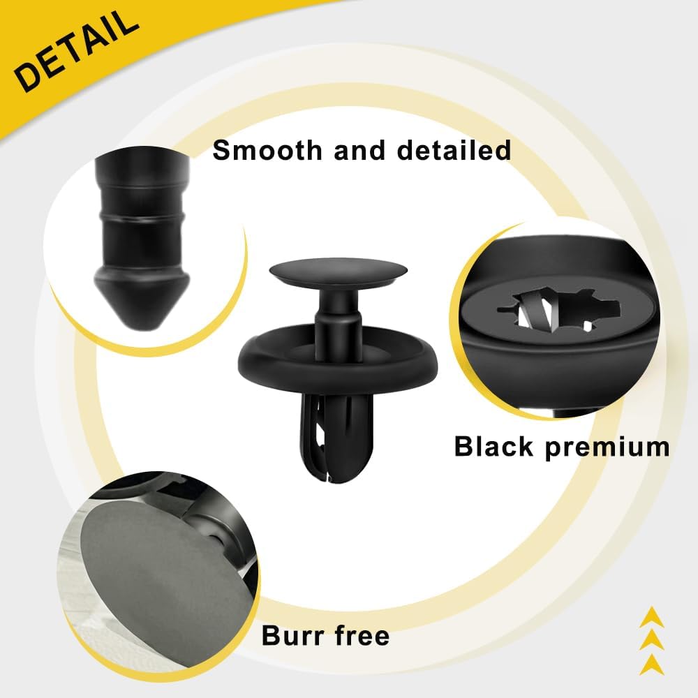 [High quality]: These clips are made of high-quality POM polymer, which is more durable, wear resistant and corrosion resistant than the common nylon and plastic on the market. Make these bumper fastener rivet clips not easily break or crack during use.
