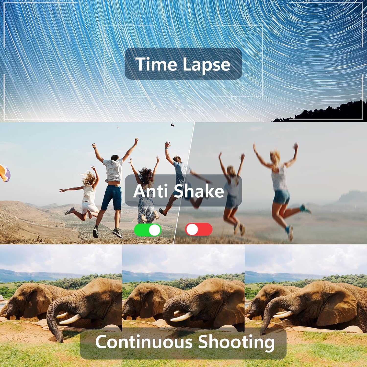 Experience the ultimate clarity and stability with our Auto-Focus & Anti Shake technology. Say goodbye to blurry shots and hello to crystal-clear images. Our advanced autofocus system ensures that your subject is always in sharp focus, no matter how fast-paced the action. Combined with the Anti Shake feature, this technology minimizes camera shake, delivering steady shots even in low-light conditions.