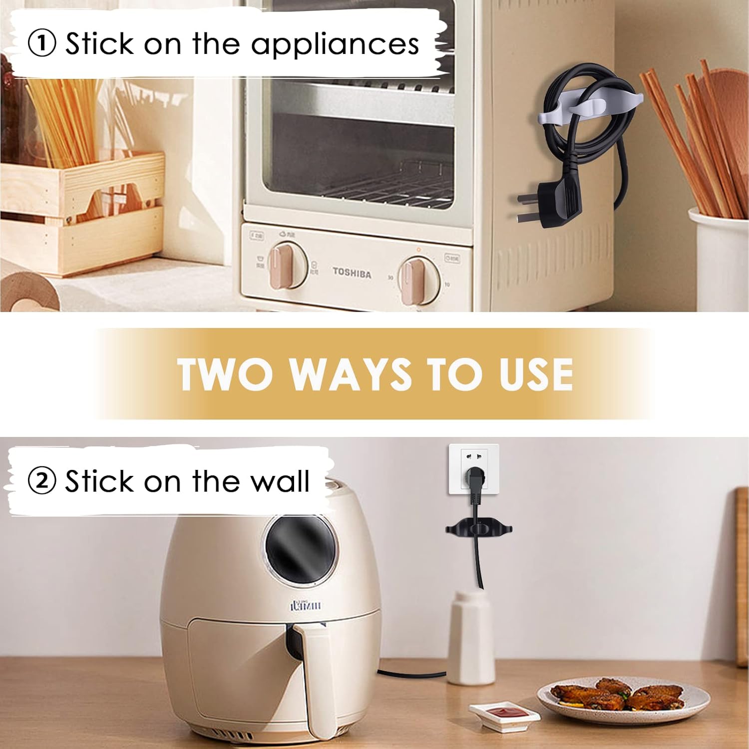 【WIDE APPLICATION 】Cord Cord Organizer for Appliance – kitchen Gadgets Cord holder Winder Holder Stick On, Adhesive Cord Keeper for Blender Mixer, Coffee Maker, Air Fryer,Kitchen Accessories for appliances can be used to organize the power cords of various appliances, such as stand mixers, air fryer,pressure cooker, toasters, coffee maker, blenders, bathroom hair tools, offices and more!