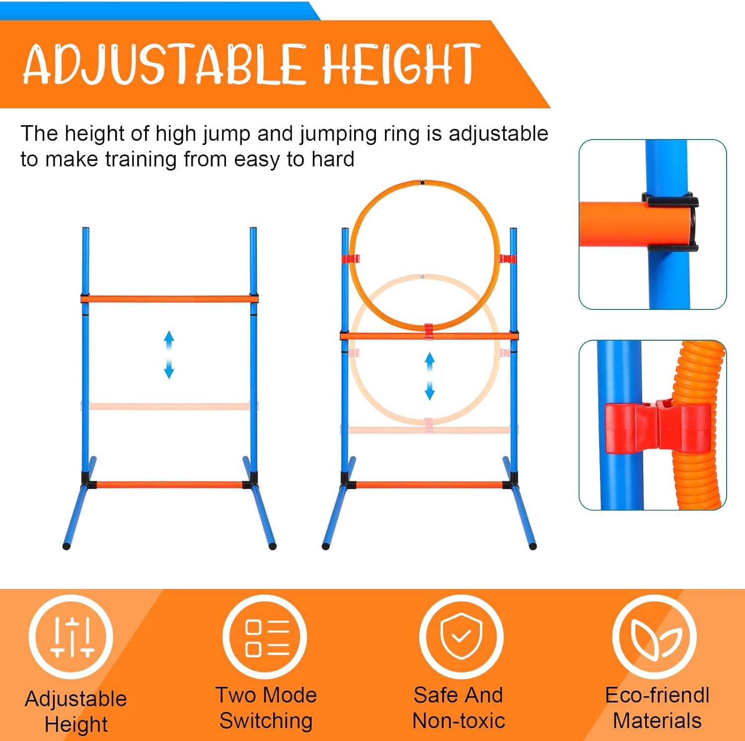 5 Sets Dog Agility Training Equipment Obstacle Agility Training Starter Kit Dog Exercise Equipment Pet Games Outdoor Dog Agility Course with Tunnel Adjustable Hurdle Jump Ring Pause Box Agility Poles