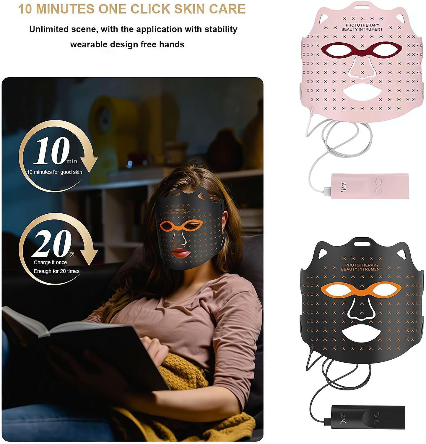 💖Prepare Mask: Wear the LED beauty mask and adjust the elastic bands for a comfortable fit.