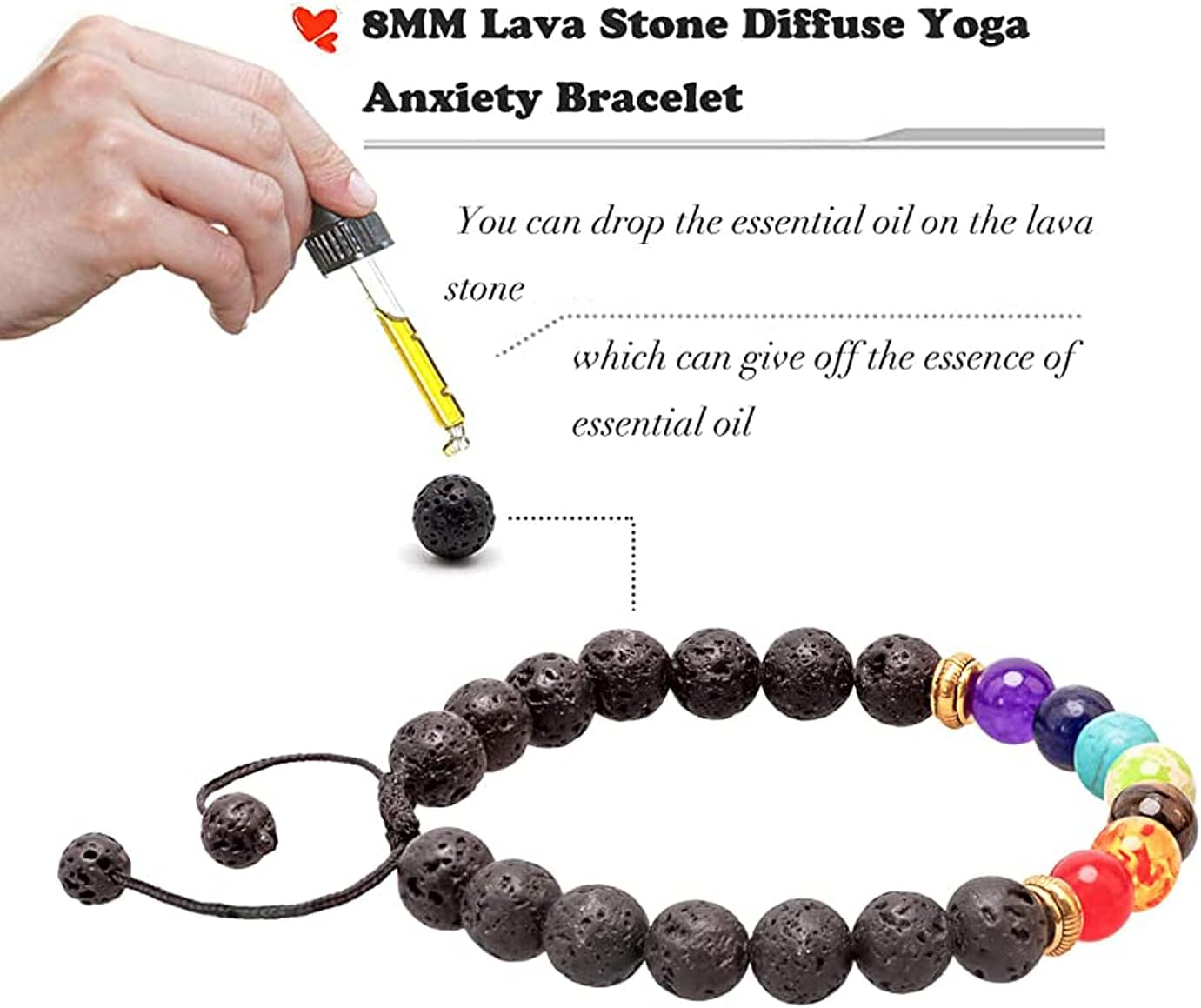 7 Chakra Lava Rock Essential Oil Diffuser Bracelets for Women Men Religion Healing Aromatherapy Bracelet – Relax,Balance,Meditation