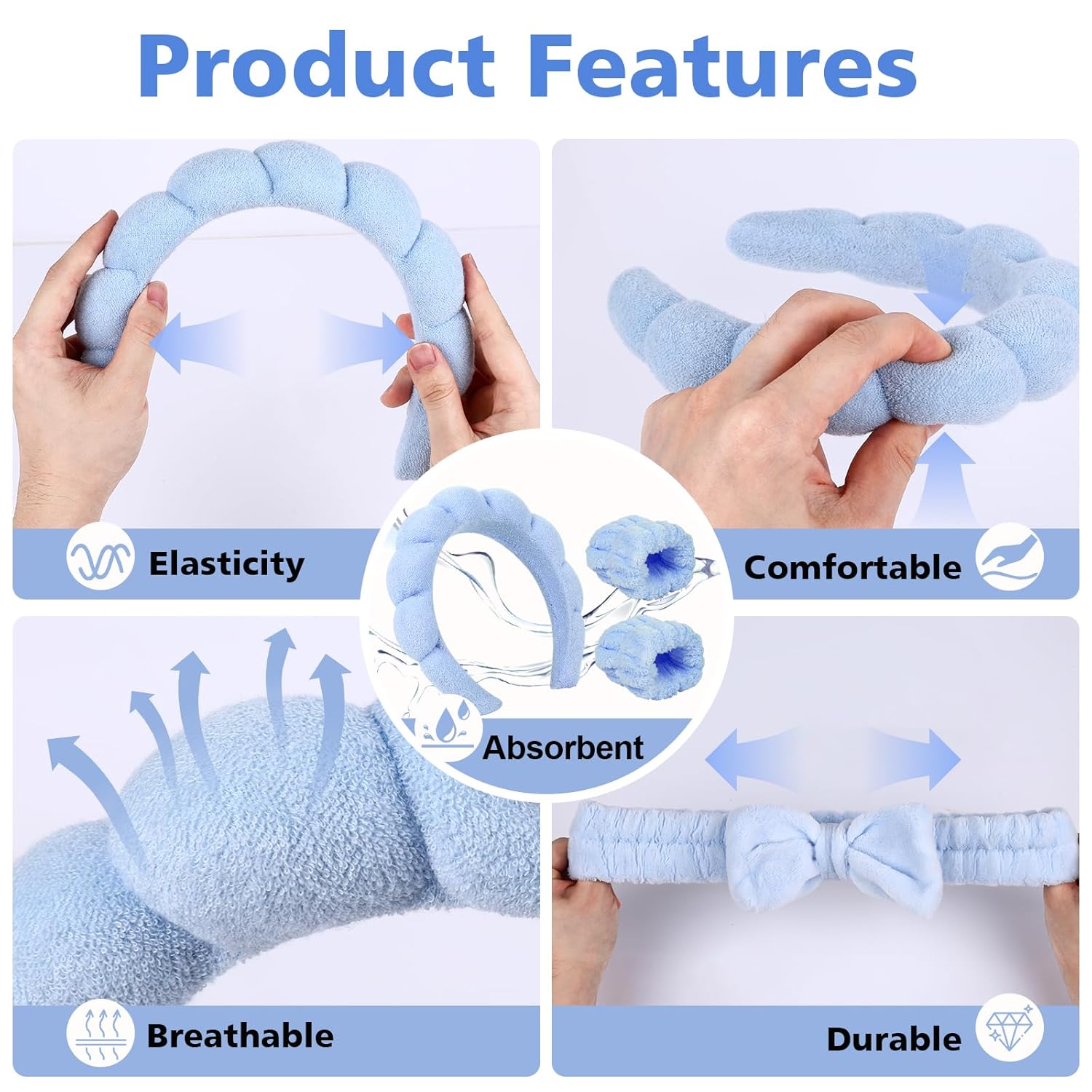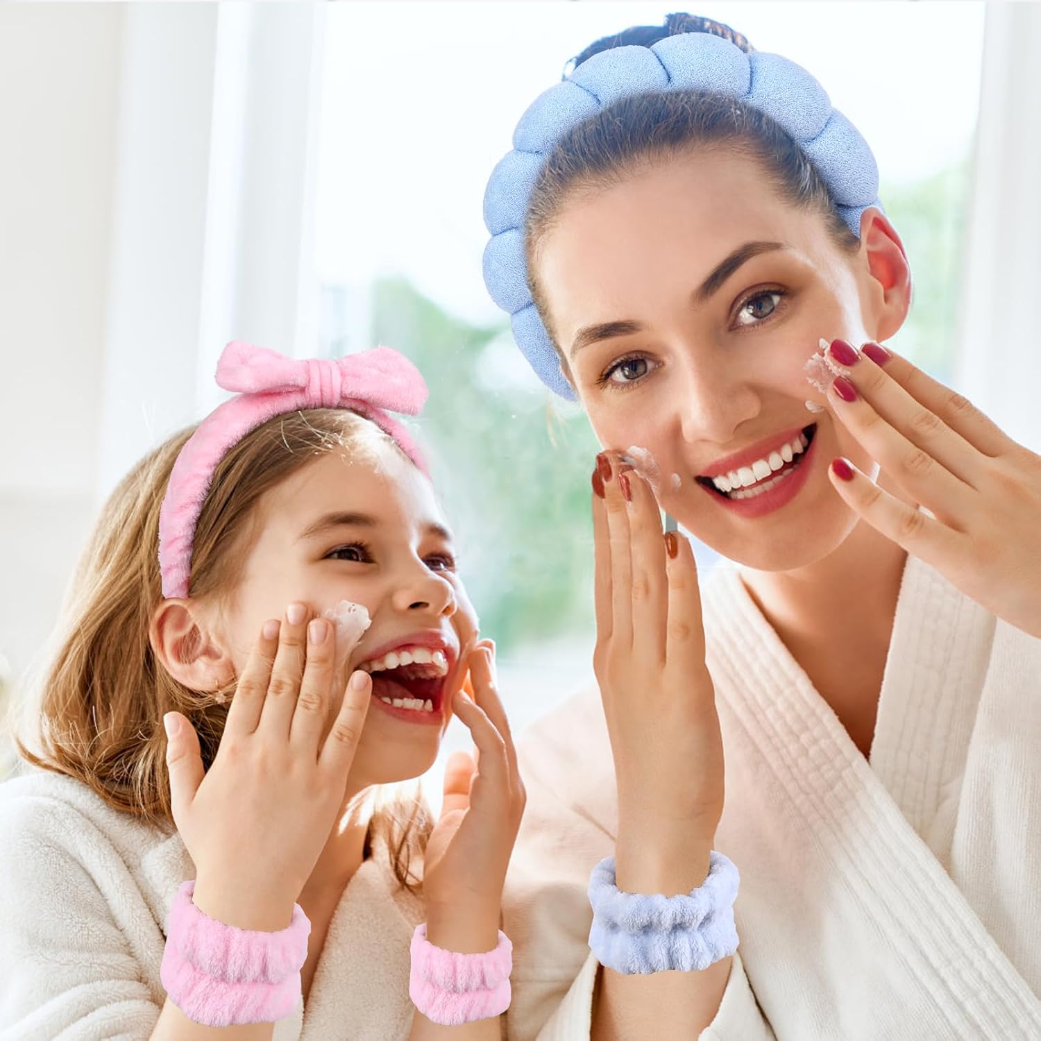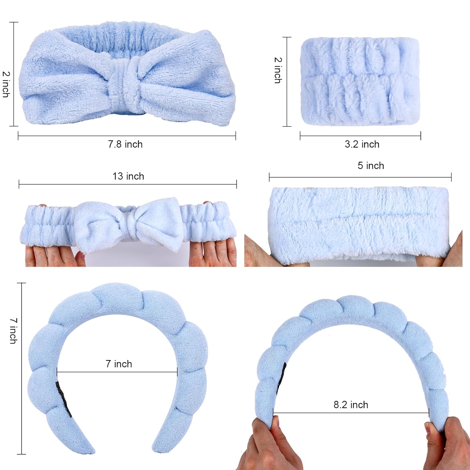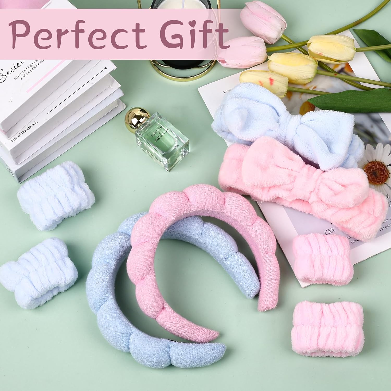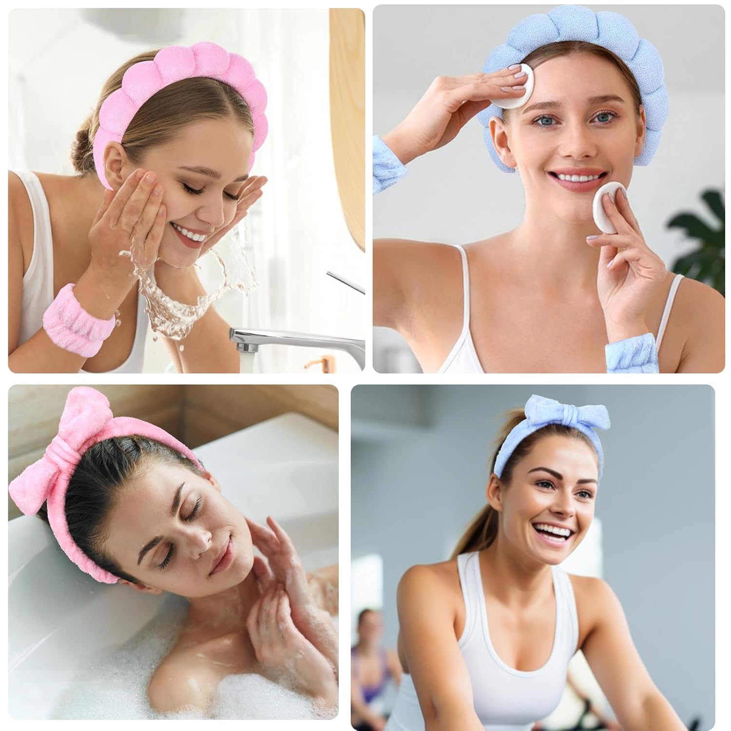 【Pink & Blue Combo Pack】You will receive 2 spa headbands for women, 2 bow makeup headbands, and 4 wristbands for washing the face in this combo pack that caters to your daily cleansing and changing needs. You can also share it with your friends or family.