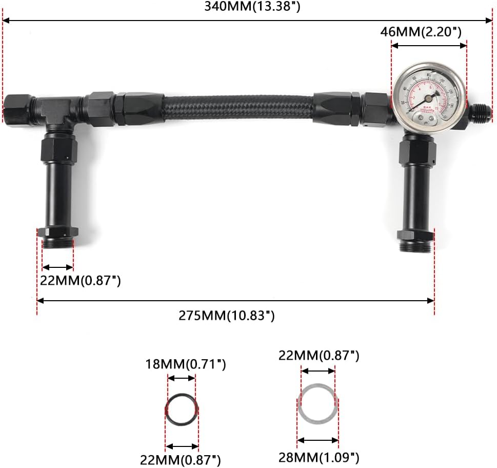 【Premium Material】The dual feed fuel line is made of high-density lightweight aluminum,high strength and durable. The black anodized surface for enhance its oxidizing, rusting and corrosion resistance. The Hose is stainless steel nylon fiber braided, wear and heat resistance.