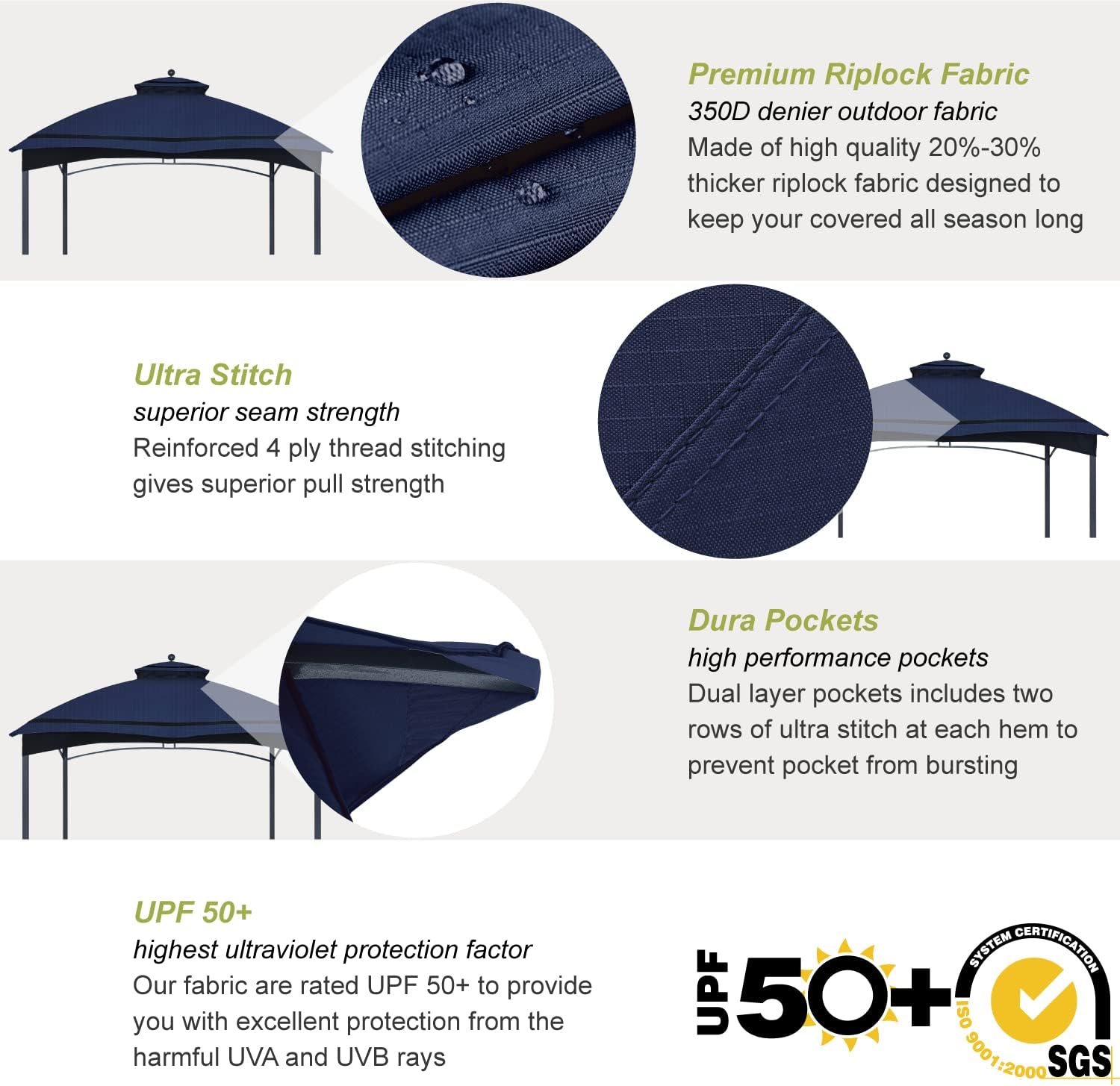 [ORIGINAL UPGRADE & SATISFACTION]:Manufacturer direct selling: original sample and original size for Lowe’s allen + roth 2012-2016 gazebo. Upgrade the original quality and material.Two fabrics are available: Original Durable Polyester Fabric and High Standard RipLock Material.Meet your original style or upgrade style needs.