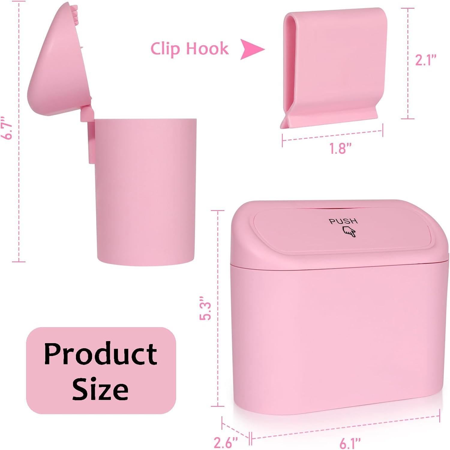 Compact Appearance: Size: 6.1 x 5.5 x 2.6 inch, It’s a tiny but convenient and functional car garbage can, small trash can maintains Your Vehicle Clean and Organized, yet do not occupy the other space of the car. The car garbage can could stay organized while traveling or vacationing. It is very handy for you