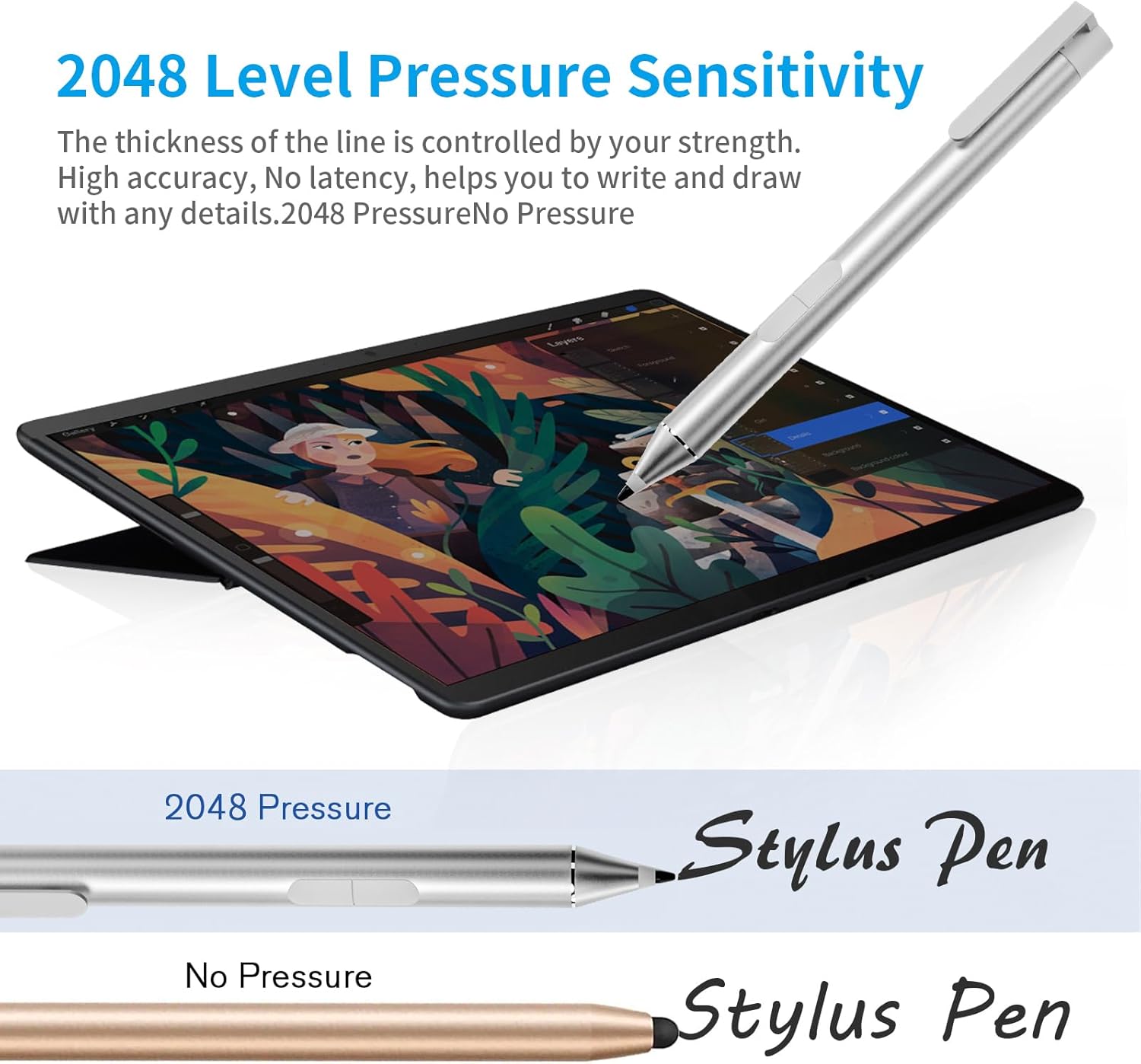 【Natural Writing】 A Pen that’s ready for the professional – Write, draw, or mark-up documents digitally. The stylus for dell touchscreen laptop with 2048 levels of pressure sensitivity ensures a scratch-free use with your screen, provide Highly Sensitive and Precise Writing & Painting Experience, response time within 25 milliseconds, accuracy down to 0.5 mm.