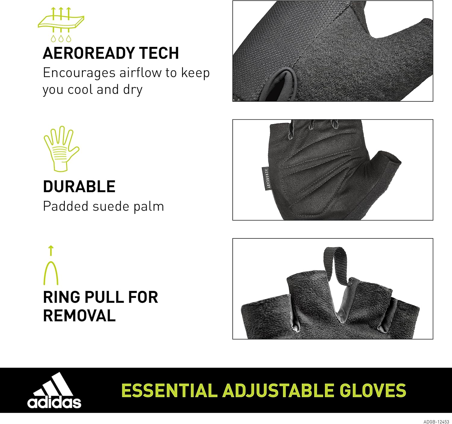 adidas Essential Adjustable Fingerless Gloves for Men and Women – Padded Weight Lifting Gloves – Adjustable Wrist Straps for Tailored, Secure Fit