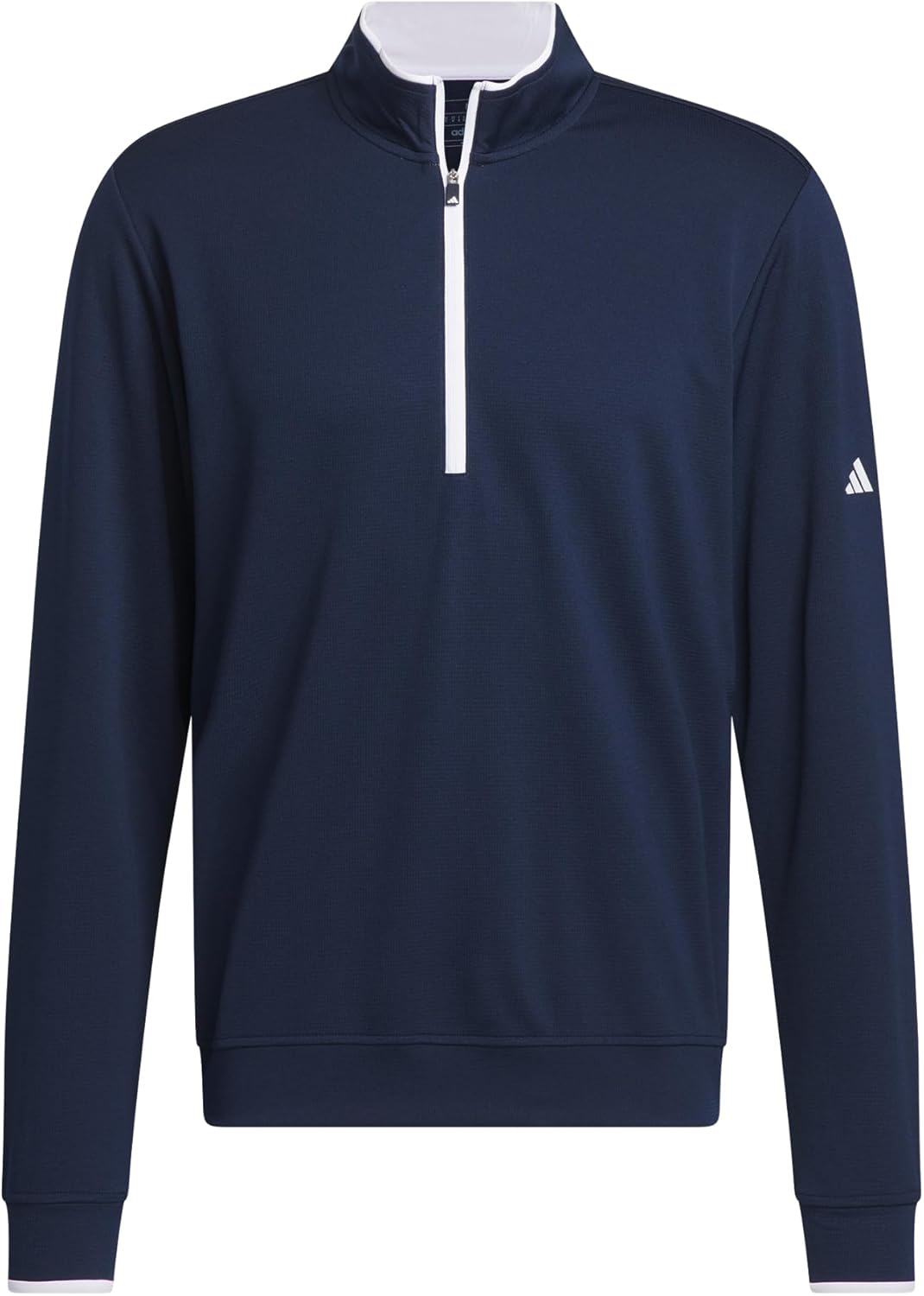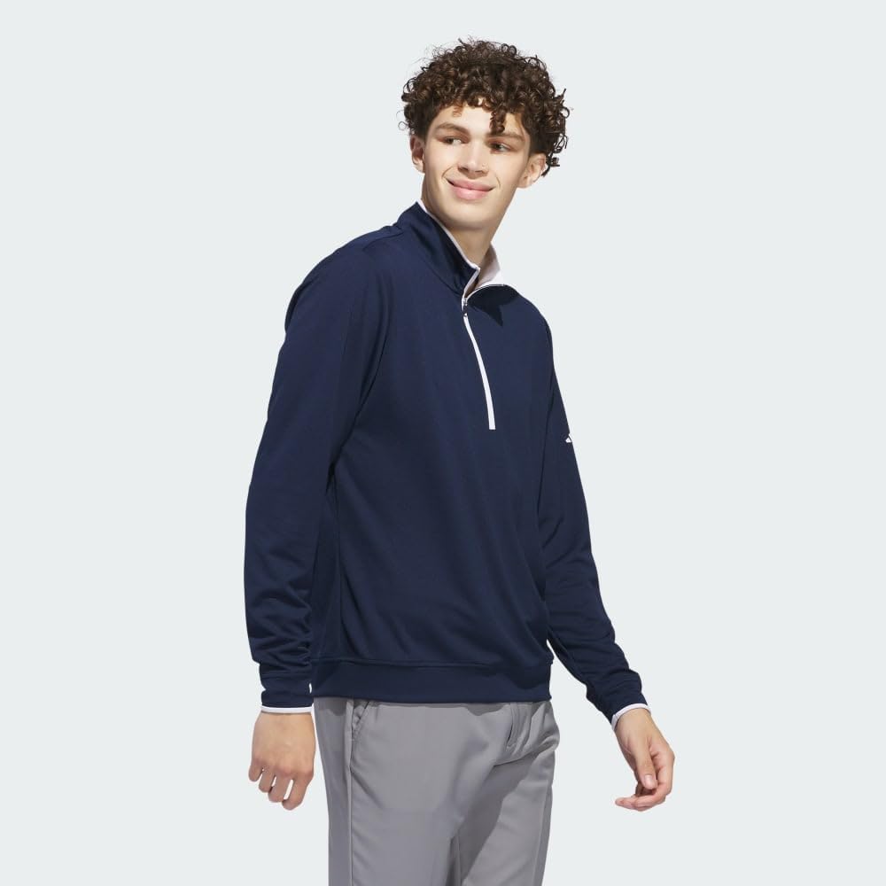 Layer up for comfort on the course. This men’s adidas golf top is soft, lightweight and keeps you covered in cool weather. It has a half-zip design so you can customize the airflow and a stand-up collar with a pop of color on the inside. Made with 100% recycled materials, this product represents just one of our solutions to help end plastic waste.