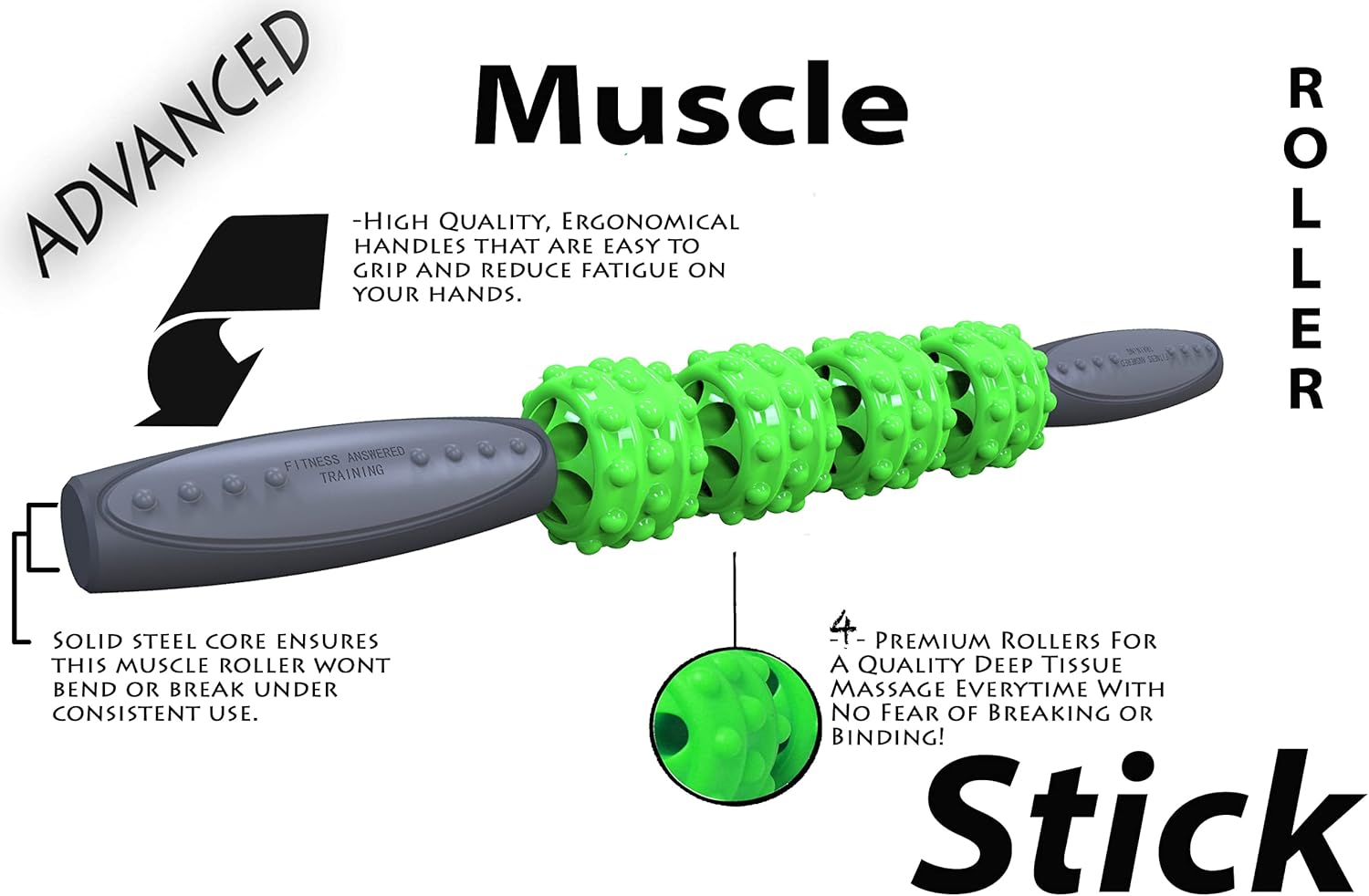F.A.T. PRODUCTSMASSAGE ROLLER MUSCLE STICKS Rollers For The Results You NeedWhy are there so many identical rollers on Amazon? Those guys all buy from the same factories in CHINA Stop Rewarding the KNOCK-OFFSYou see a lot of sellers try to copy our Original Beginner Roller Design No one has our EXCLUSIVE designs listed below Exclusive Designs from F.A.T. ProductsElite Series Ideal for experienced rollers, used on extremity muscles(biceps, triceps, forearms, quads, hamms, and glutes) Comes in Hard or Soft Rubber, based on preference Advanced Series Ideal for experienced rollers, used on muscles around the spine(neck and back), due to larger spacing between rollers No one has more designs and options in Massage Rolling than Fitness Answered24 Options Available 4 Unique Designs 6 Colors Each (Red, Orange, Pink, Green, Blue, and Purple.) Stop Stretching, Start Rolling PreWorkout or PostAs a Personal Trainer I have seen a lot of pulled muscles and some serious long term injuries Stretching elongates the muscle, weakening it and making it prone to injury Rolling forces fresh, warm, nutrient rich blood into your muscles, instead stretching/weakening This increased nutrient rich blood flow will help aid in relief from most common pains! Great for those seeking everyday relief from leg, back, or tendon pain Better Than A Bulky Foam RollerStop wiggling around on a filthy gym floor, start Muscle Roller comfortably. Easily massage your commonly sore areas(legs, glutes, lower back and neck), from a comfortable position F.A.T. Products Has Your Back100% Money Back if you are not completely satisfied! Like REVIEWS?Need social proof? Our Stick Line has OVER 2000 ratings
