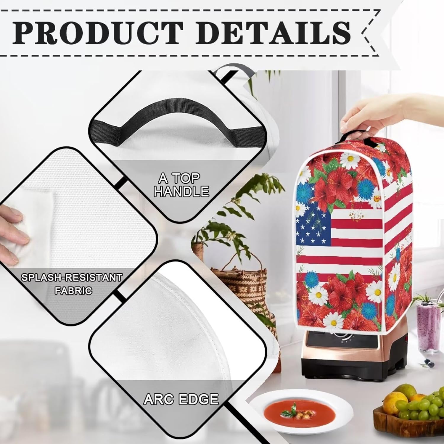 AFPANQZ Flower USA Flag Blender Cover Kitchen Appliance Decor Dust Proof Cover Blender Dust Cover Home Kitchen Appliance Cover Decoration
