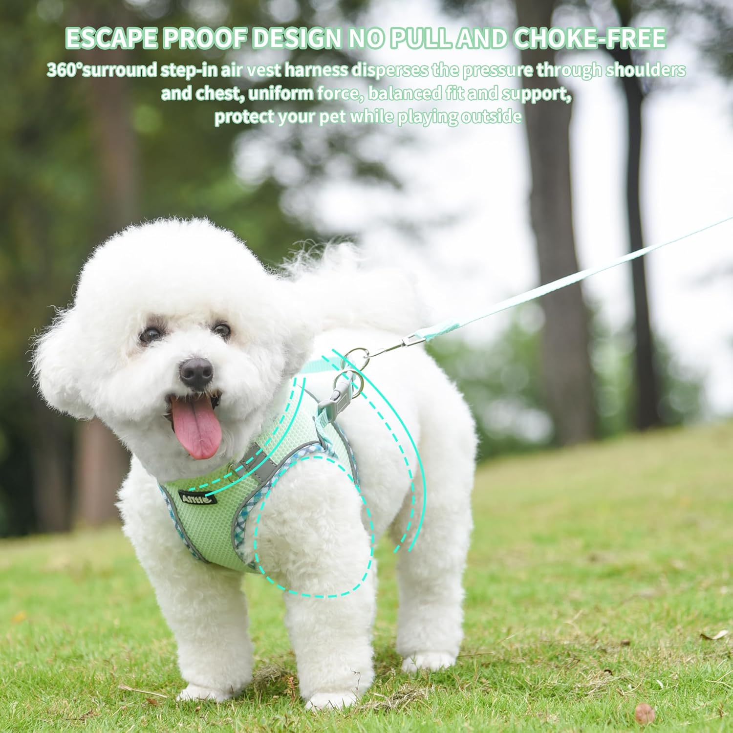 AIITLE Durable Dog Harness and Leash Set for Walking, Step in Vest Harness, Reflective Bands, Soft Breathable Pet Supplies, for Extra Small Dogs and House Cats Sage XXXS