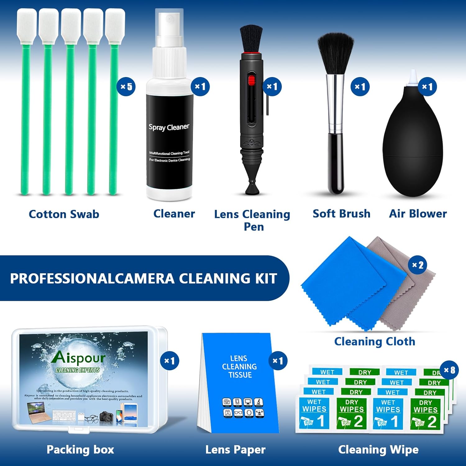 Aispour Camera Lens Cleaning Kit, 10-in-1 Camera Cleaning Kit, Camera Lens Cleaner and Camera Accessories, Includes Lens Cleaning Kit/Lens Cleaner/Lens Cleaning Pen/Soft Brush