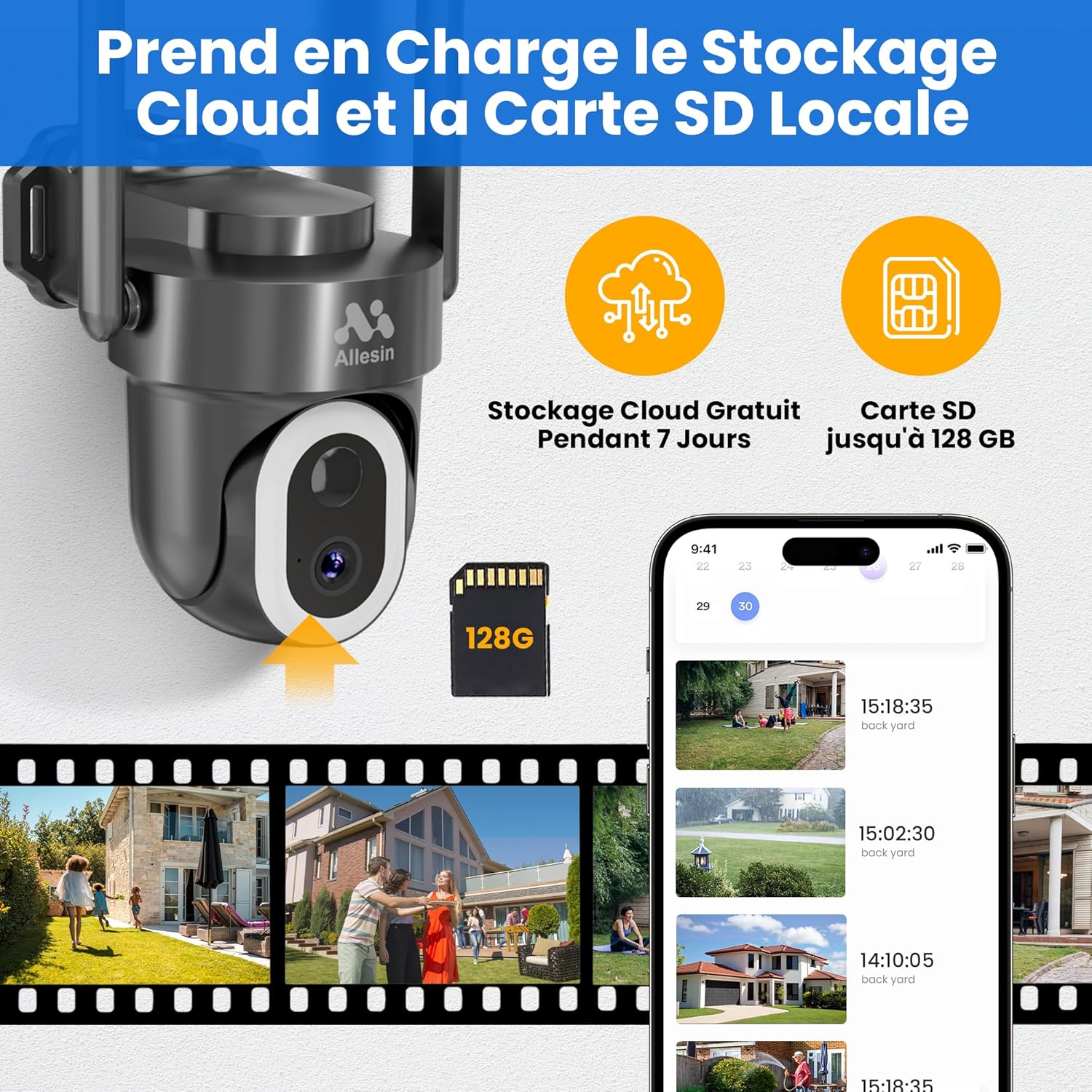 📹️【7-day Rolling Cloud Storage For Life】- The wireless security camera has dual storage modes, supports SD card(Max 128G) and cloud storage free 7-day rolling cloud storage for life, videos can be played through the free APP/client without subscription.