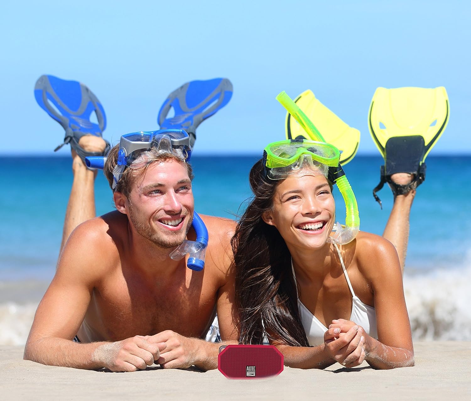 Altec Lansing Portable Bluetooth Speaker IP67 Waterproof Outdoor Speaker with 30-Foot Range and 6-Hour Battery Floating Shockproof Wireless Speaker for Beach, Shower, Home and Car (Red)