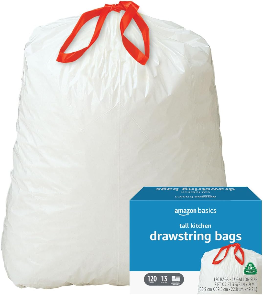 Amazon Basics – Tall Kitchen Trash Bags, 13 Gallon 10% Post Consumer Recycled Content, Unscented 120 pack