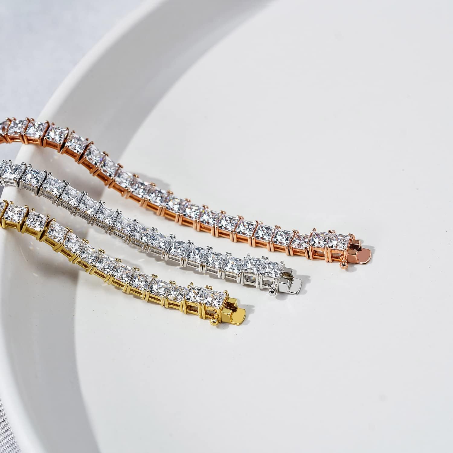 Amazon Collection Platinum or Gold Plated Sterling Silver Princess-Cut Tennis Bracelet made with Infinite Elements Zirconia, 7.25″