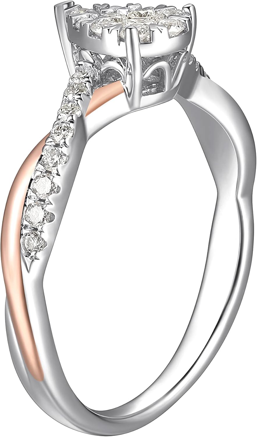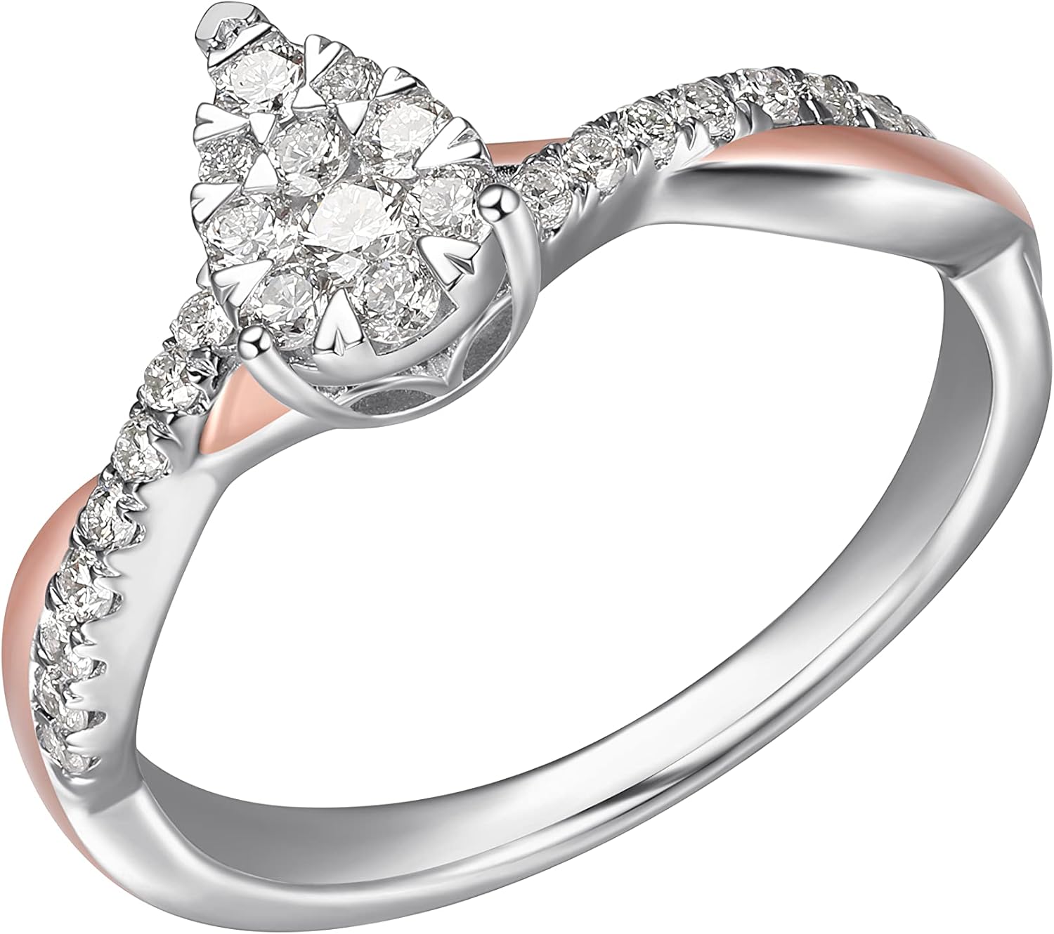 Amazon Essentials 18 Karat Rose Gold Over Sterling Silver and Platinum Over Sterling Silver 3/8th Carat Total Weight Lab Grown Diamond Two Tone Twist Pear Cluster Ring, Size 7 (previously Amazon Collection)