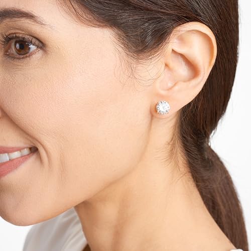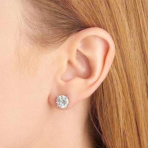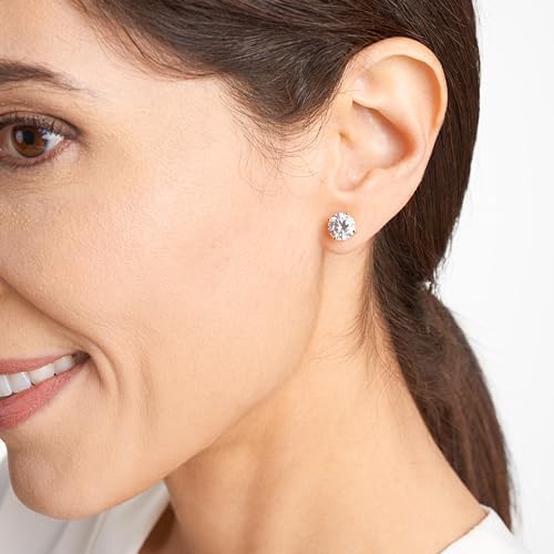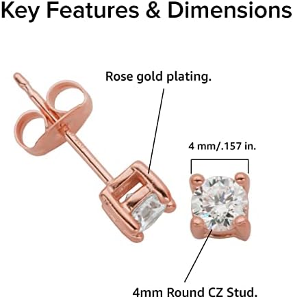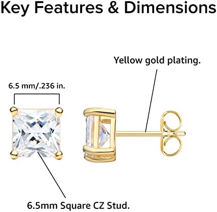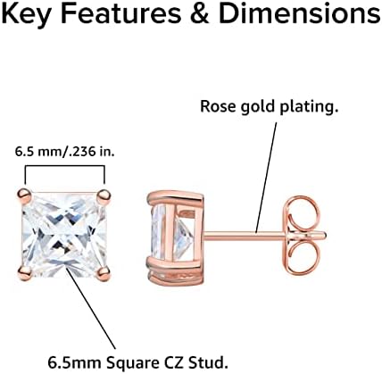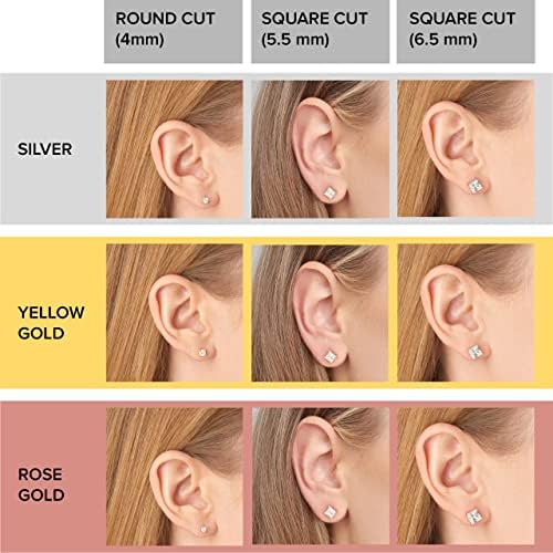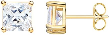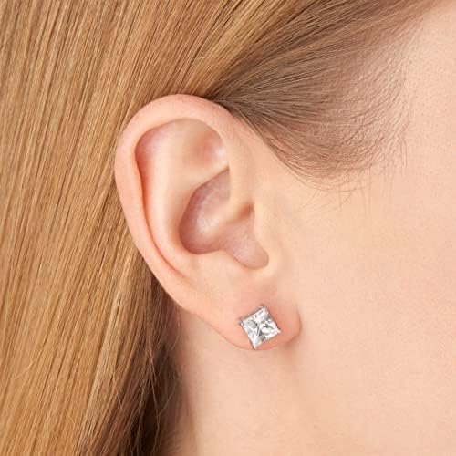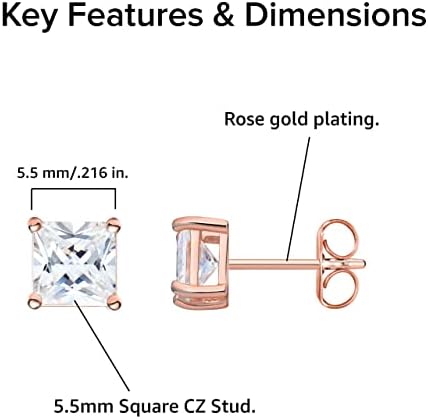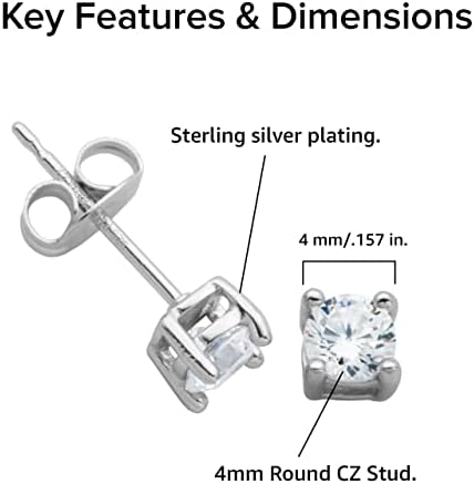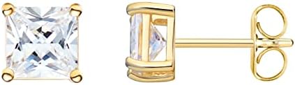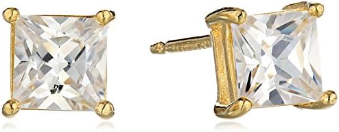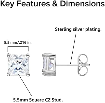 Amazon Essentials Plated Sterling Silver Cubic Zirconia Stud Earrings (Round & Princess)