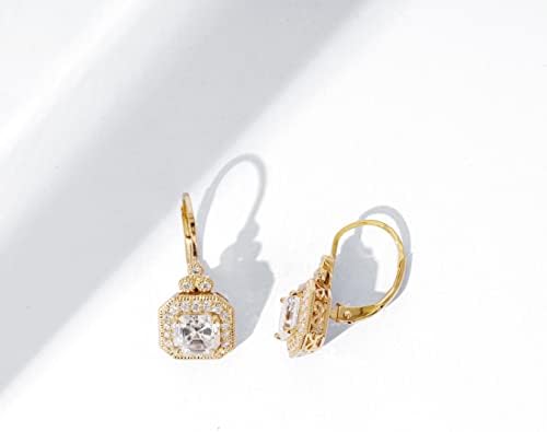 Amazon Essentials Platinum or Gold-Plated Sterling Silver Infinite Elements Zirconia Asscher-Cut Antique Drop Earrings (previously Amazon Collection)