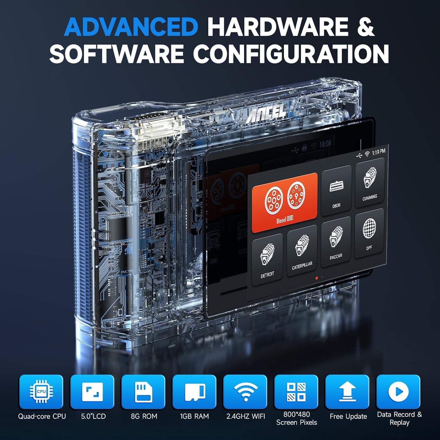 🚛【Available for Paccar&Detroit】ANCEL HD3400 PRO is compatible with a wide range of engine types, including Detroit engines (Series 50, Series 55, Series 60, OM501, OM502, DD5, DD13, DD15, DD16,MBE 900, MBE 4000, DD8, DDDL 6, DDDL 7, CPC2, CPC02T, CPC04T, CPC302T and More) and Paccar engines(PX-7, PX-9, MX-11, MX-13 and more). like medium-duty or light-duty trucks, or even semi-trucks