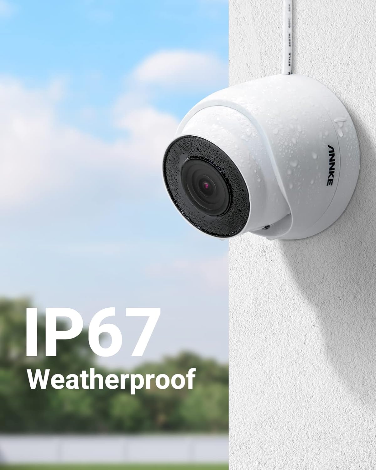 【Unrivaled 4K in All Environments】This ANNKE PoE outdoor security camera has exceptional 4K UHD images realized, 120 dB true WDR, 3D DNR, BLC & HLC tech; Ultra-wide 2.8 mm lens provides diagonal 123° view angle. Ultra HD pixels make EXIR 2.0 Night Vision with Smart IR up to 100 ft.