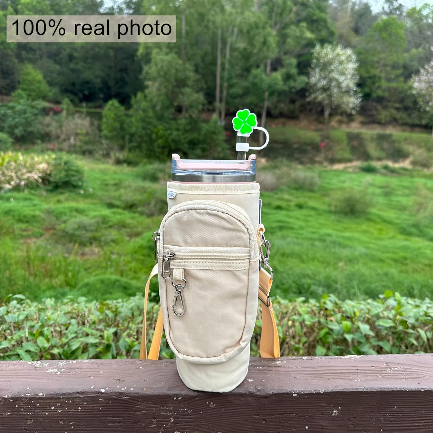 Nylon Water Bottle Holder Pouch with Straw Cover and Large Phone Zipper Pocket for Stanley.
