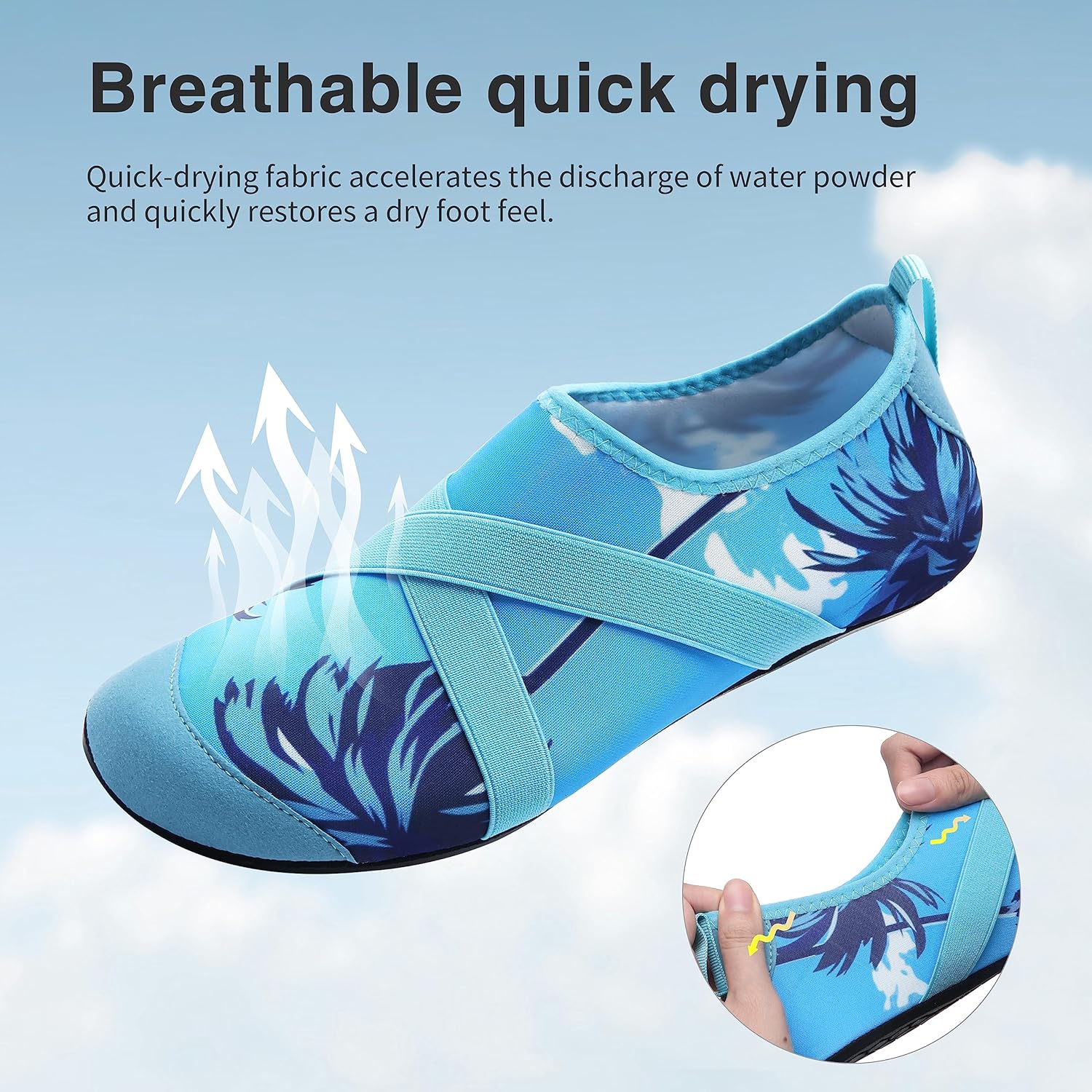 A lightweight breathable quick-drying water shoes,ultra light weight smooth stretchy fabrics and Ultra-Light anti-slip rubber sole provide a comfortable feeling in wearing. A perfect shoes for your summer outdoor water activities .
