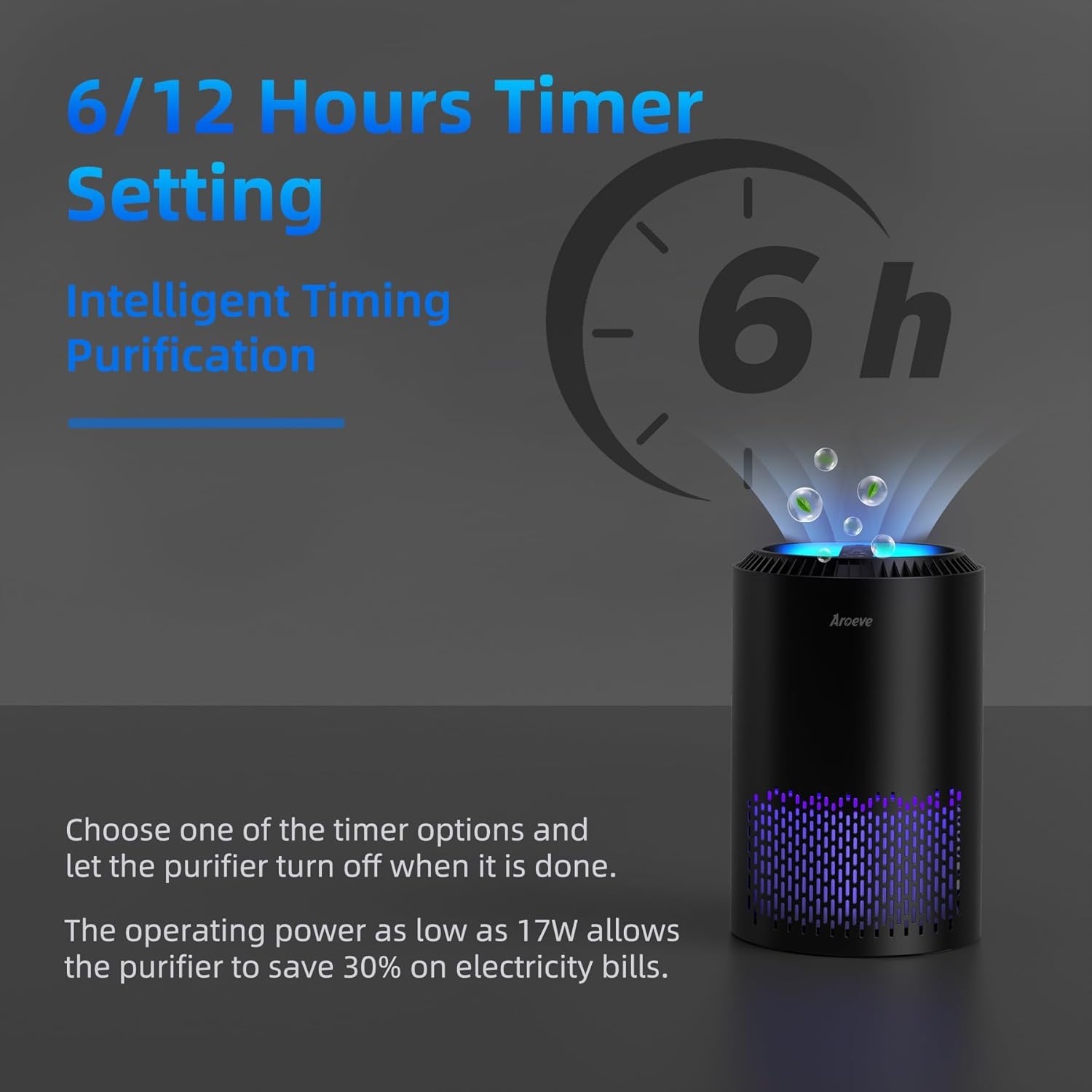 Impressive Particle Filtration: AROEVE air purifier utilizes filter that can filter out particles such as smoke, pollen, dander, hair, and more, potentially improving air quality and promoting better health and well-being for you.