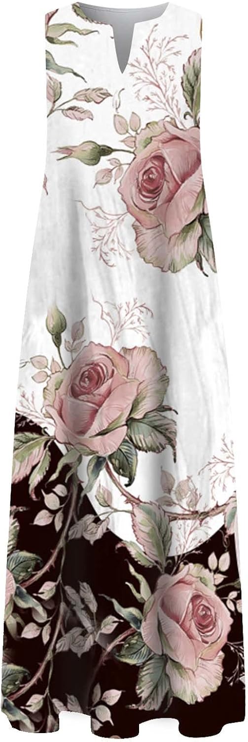 Ashowlaco Women’s Summer Dresses 2024 Plus Size Womens Floral Print Maxi Loose Dress Boho Beach Trendy
