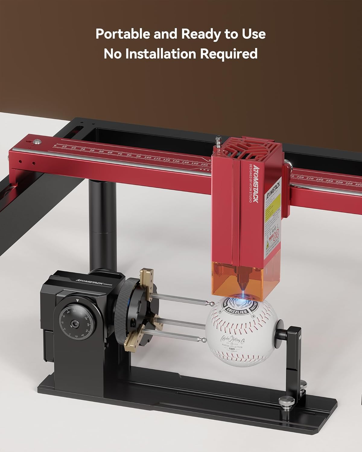 【Ideal for Irregular Cylinder Engraving】ATOMSTACK Rotary Roller is designed for engraving a wide range of irregular cylindrical objects, offering up to 180° angle adjustment and 360° rotation capability. This includes balls, rings, spherical objects, cups with handles, and various irregular items. The high-quality rotary chuck ensures consistent and stable rotation, leading to enhanced engraving accuracy.
