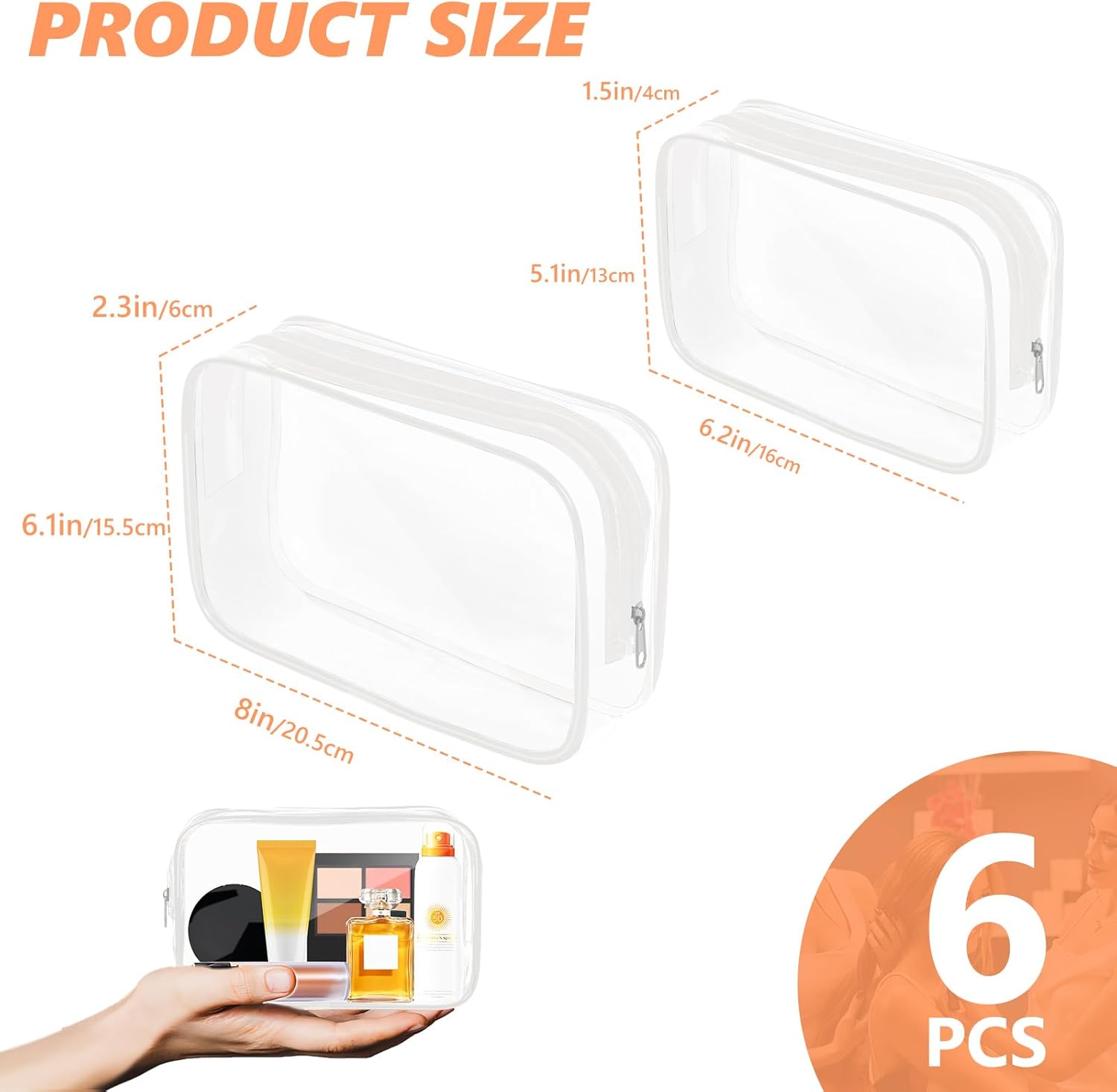 AURUZA 6 PACK Clear Toiletry Bag, TSA Approved Cosmetic Makeup Bags Set, Portable Travel Makeup Bags Zipper PVC Cosmetic Pouch Airport Airline for Travel, Bathroom