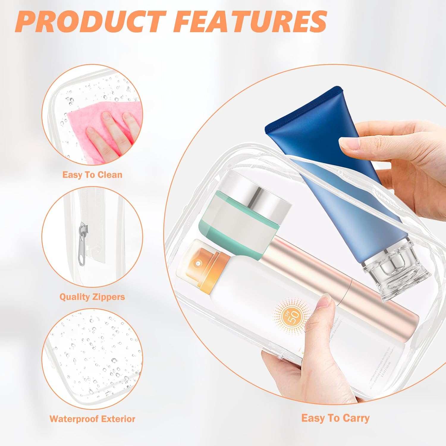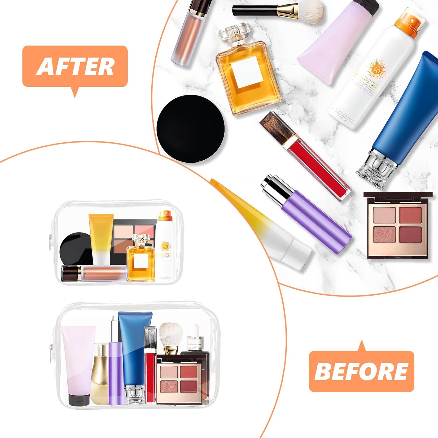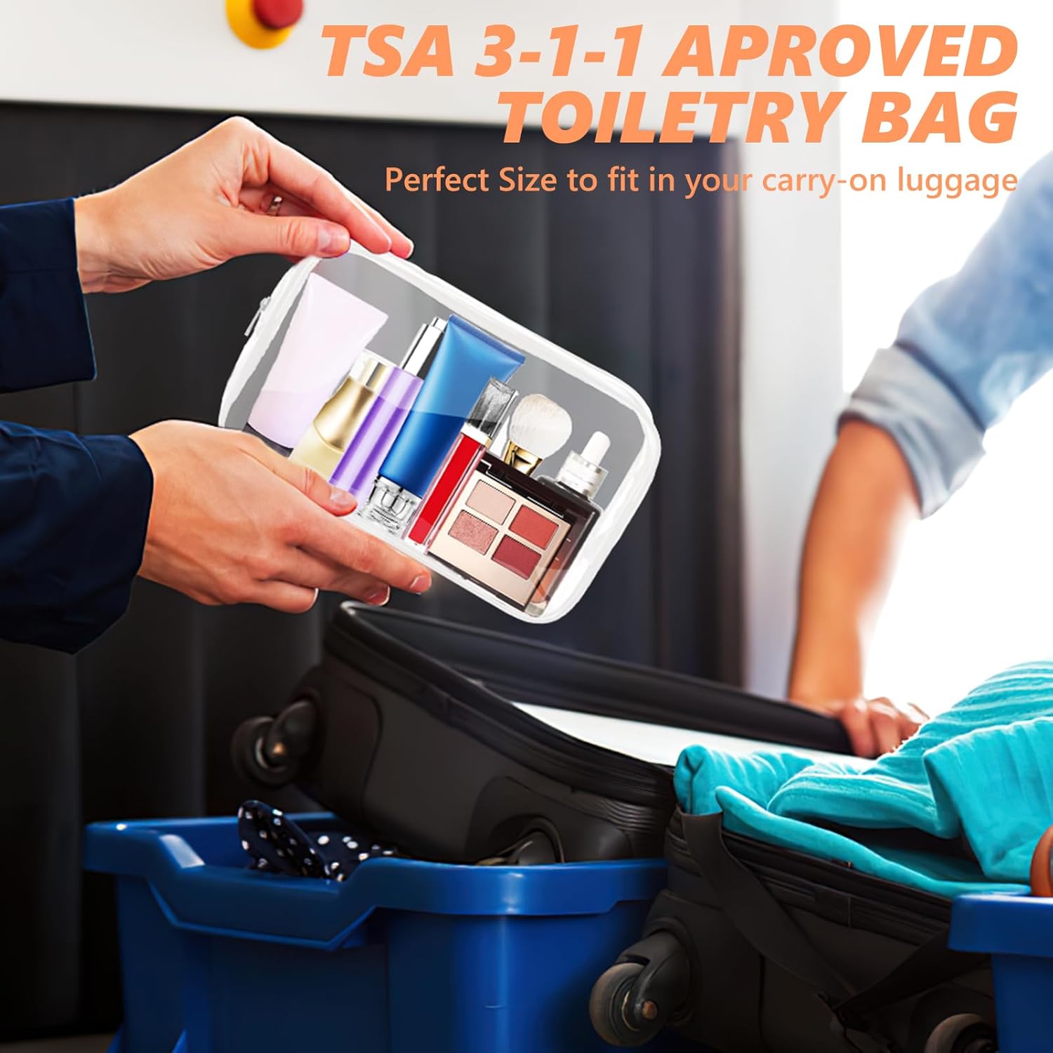 ✈✈✈【TSA APPROVED】 The TSA certified clear toiletry bag strictly follow 3-1-1 airport regulations, so you don’t have to worry about getting through airport security. All makeup bags are made of clear PVC material, so you can see the contents of the bag at a glance, and are BPA-free, safe and durable.