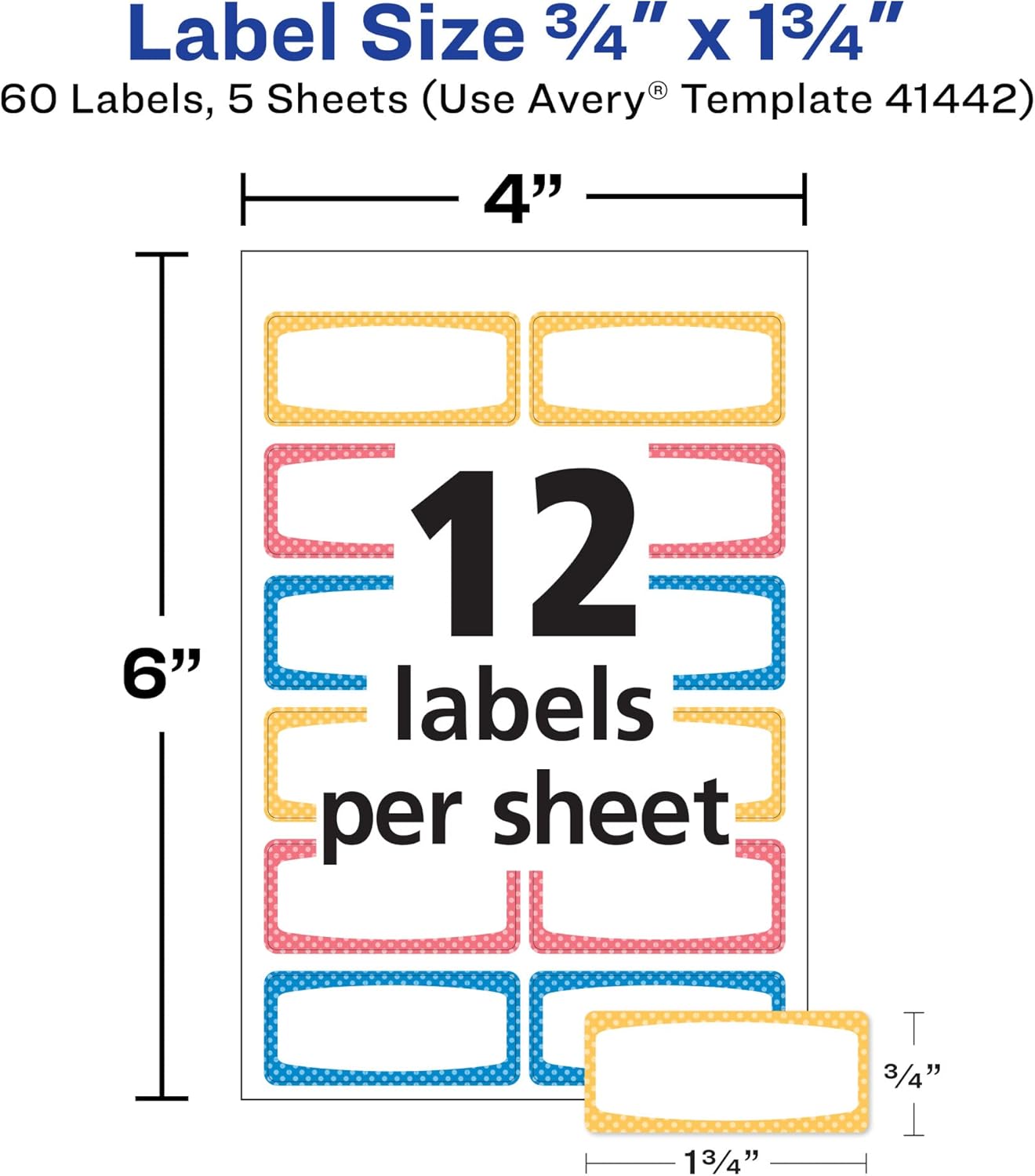 Avery(R) Durable Labels for Kids’ Gear, 3/4″ x 1-3/4″, Assorted Border Colors, Water-Resistant Labels, 60 Rectangle Labels Total (41442)