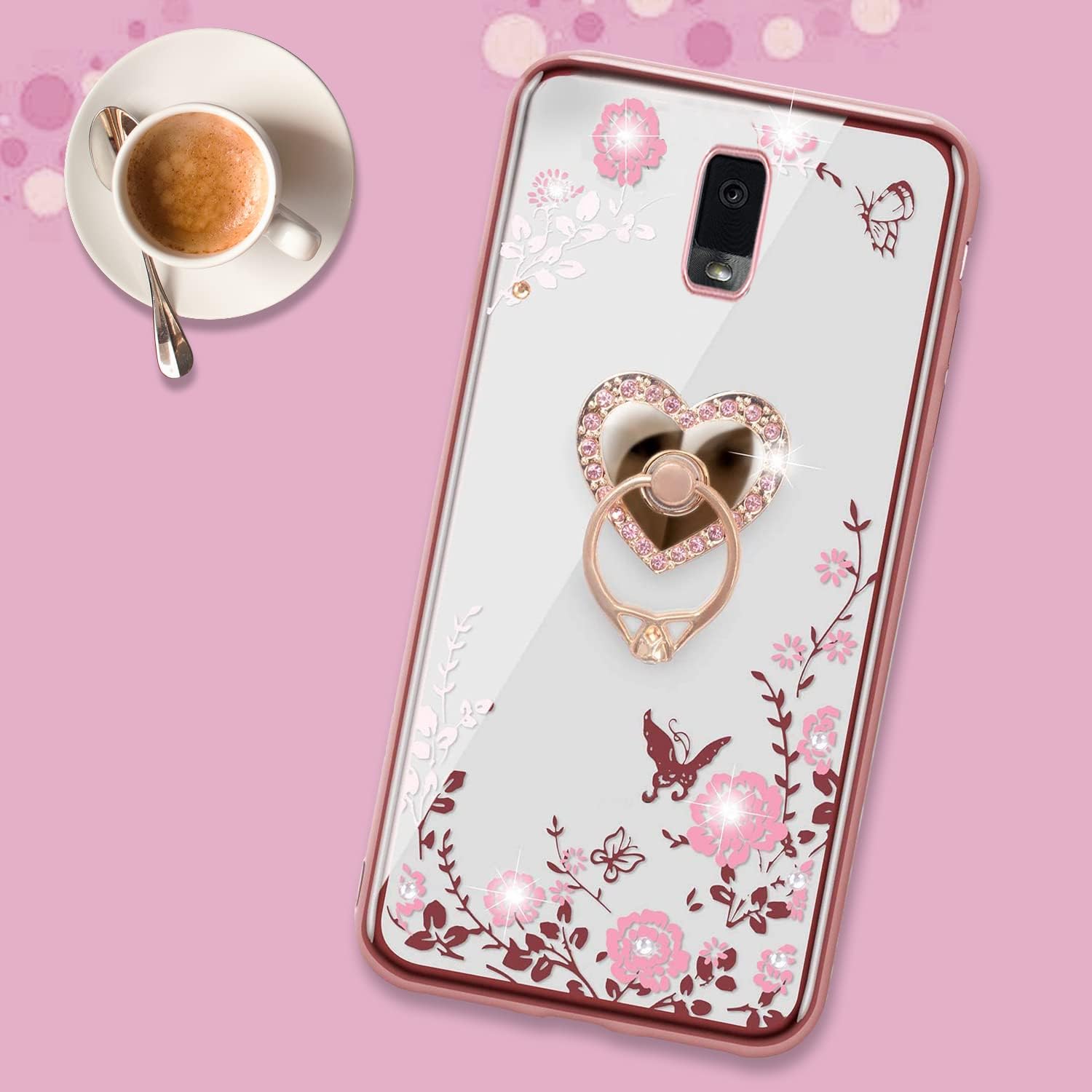 B-wishy for Blu View 3 Case for Women, Glitter Crystal Butterfly Heart Floral Slim TPU Luxury Bling Cute Protective Cover with Kickstand+Strap for Blu View 3 B140DL (Rose Gold)
