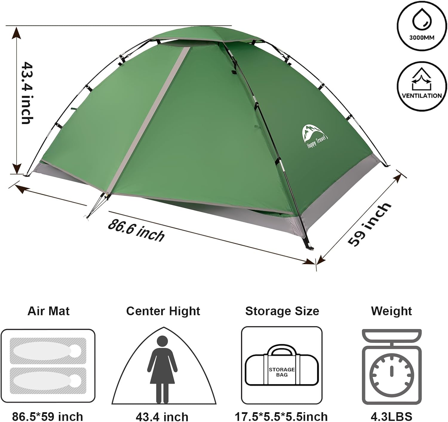 🌞【2 Person Tent】: The size of 2 person tents for camping is: 87″L x 59″W x 43.3″H, which can accommodate two people at the same time or one person with camping gear, The camp tent is suitable for solo camping or couples backpacking. It can also be used as a scout tent for parent-child outings, bringing you a wonderful outdoor time.