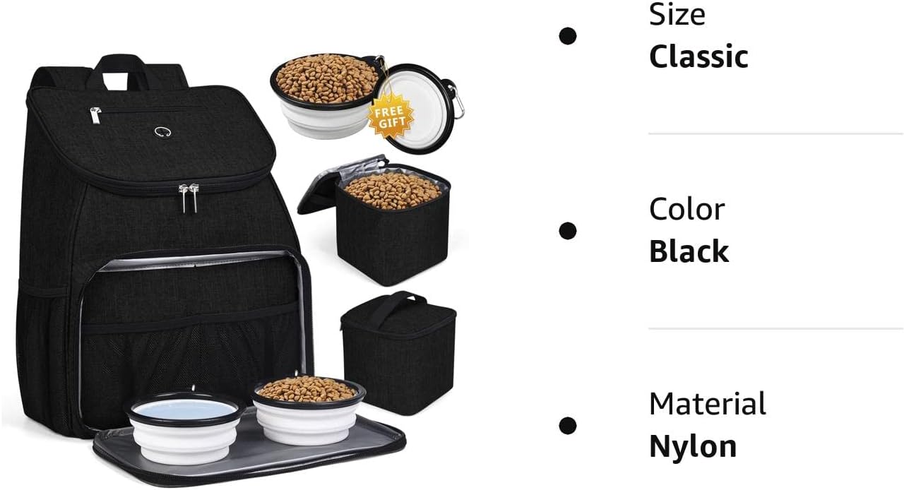 BAGLHER丨Dog Travel Bag, Airline Approved Pet Supplies Backpack, Dog Travel Backpack Accessories Set with 2 Silicone Collapsible Bowls and 2 Food Baskets. Black