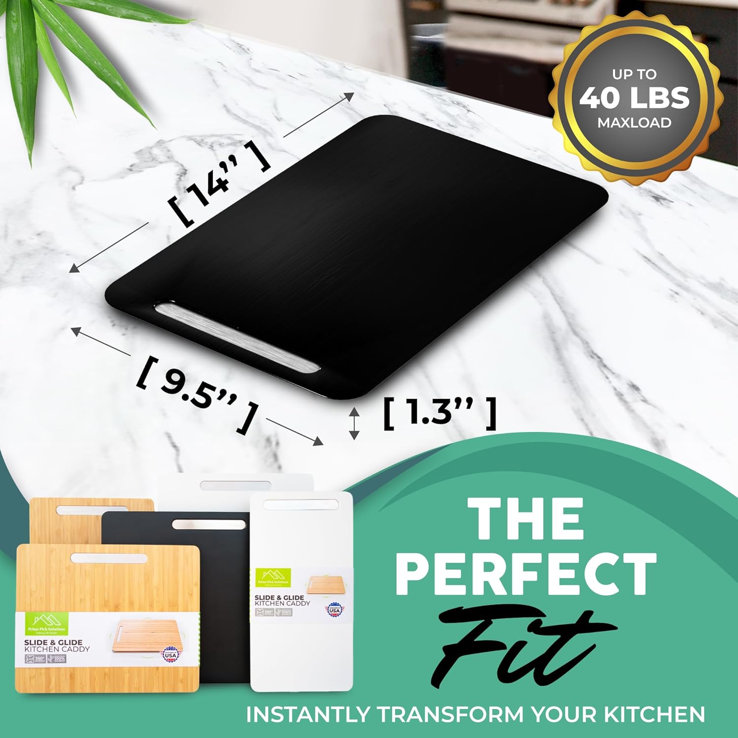Size Matters – Picking the perfect size for your space is as easy as: (1) measuring up your appliance and available space, (2) double checking heights (our counter slider for appliances measures 1.35 inches in total height, so be sure to factor this into your cabinet space). Measure, pick, order!