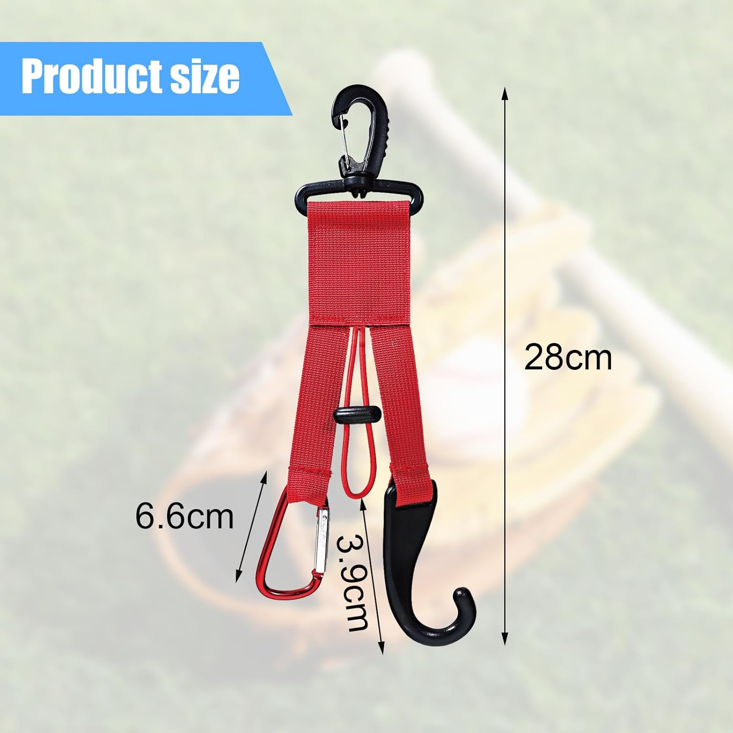 Baseball Softball Gear Hanger Dugout Organizer -Multipurpose Hanging Buckle Metal Hangers for Hold Outdoor Sports Equipment, Camping, Gloves, Helmets, Bats, Water Bottle Holder (Red)